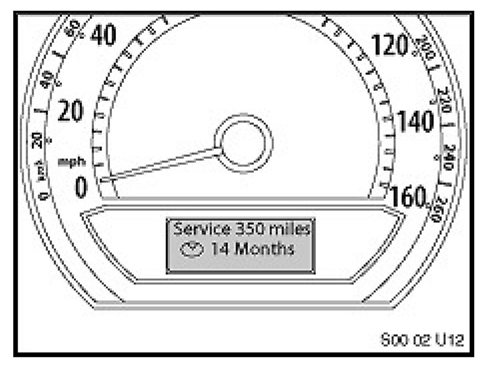 For example: The next mileage-dependent service item is due in 350 miles and the next time-dependent service item is due in 14 months.