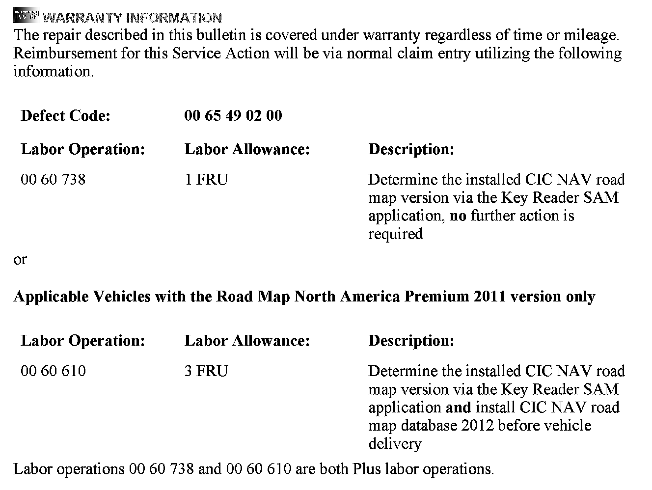 Before delivering affected vehicles to the customer, the Car Information Computer (CIC) road map database 2012 must be installed onto the CIC internal Hard Disc Drive (HDD).