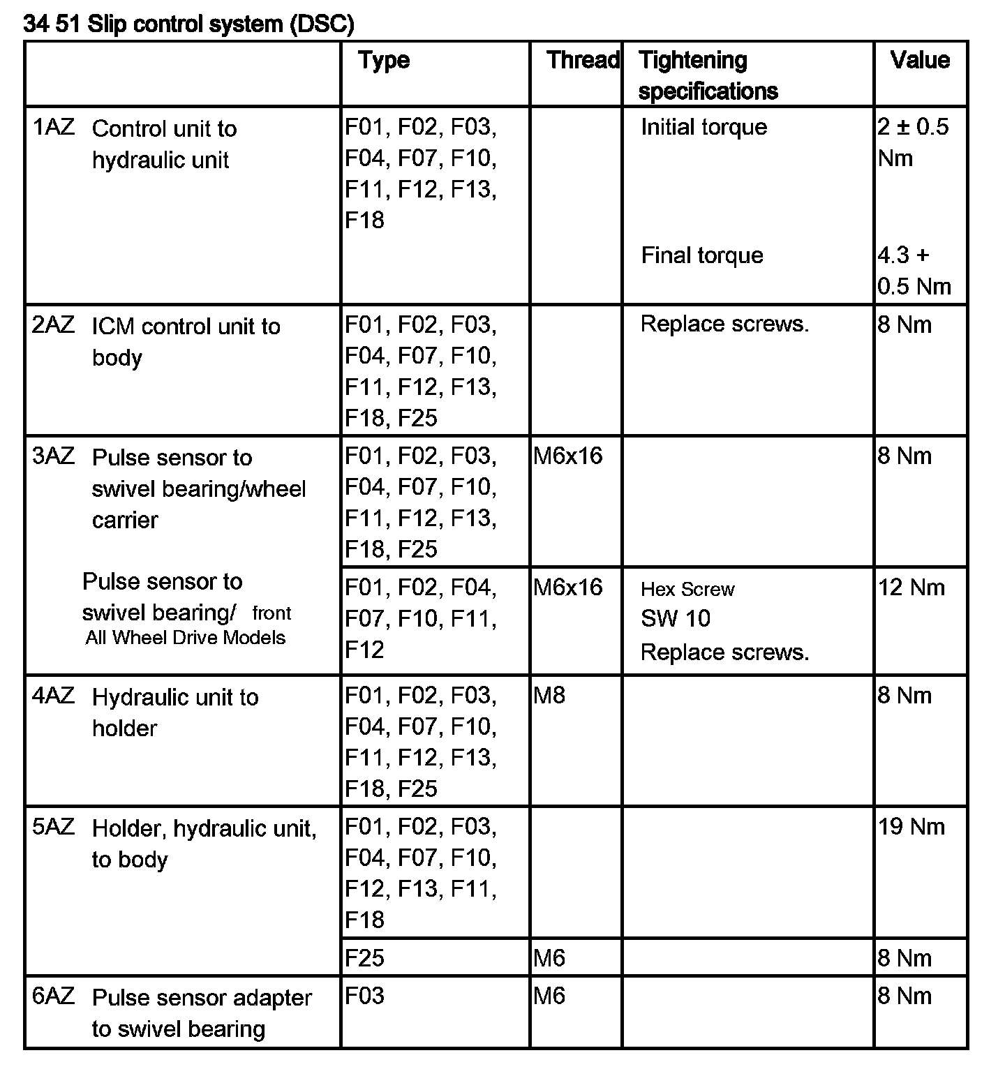 Tightening torque 34 51 2AZ.