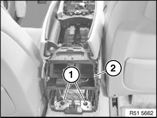 Release screws (1) on centre console carrier.
