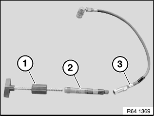 NOTE: After filling, remove quick-release coupling (1) and if necessary use the cleaning agent contained in the special tool case to clean up the UV additive.