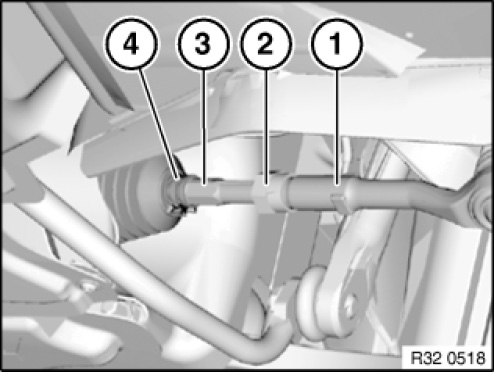 Turn track rod (3) to adjust toe-in to setpoint value.