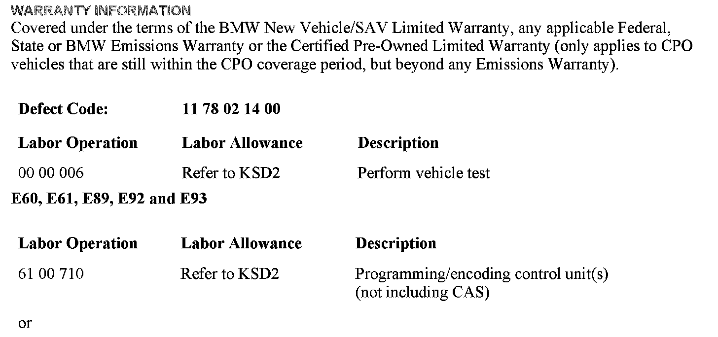 Program the vehicle with ISTA/P P2.45.0 (available from December 2011) to integration level E060-11-12-500 or higher.