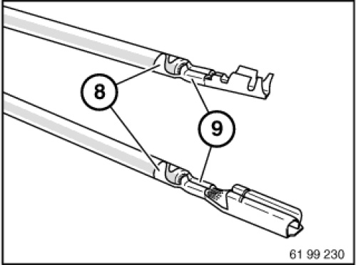 Check insulation crimping (8) and wire crimp (9) against following illustrations to ensure crimps are correctly located.