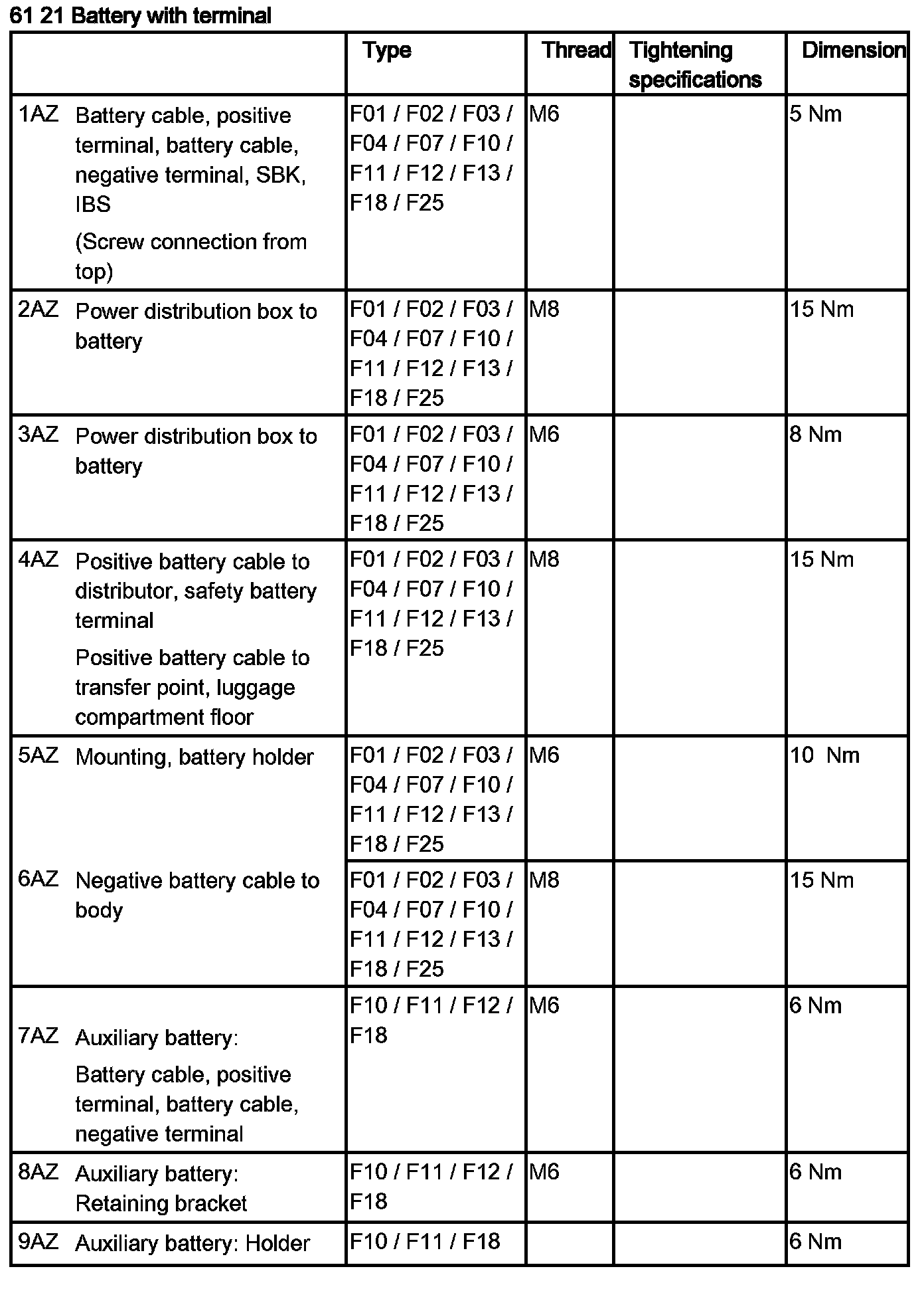 - Connect battery negative terminal and tighten, tightening torque 61 21 1AZ