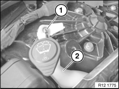 Lay filler neck (2) for windscreen washer fluid to one side.