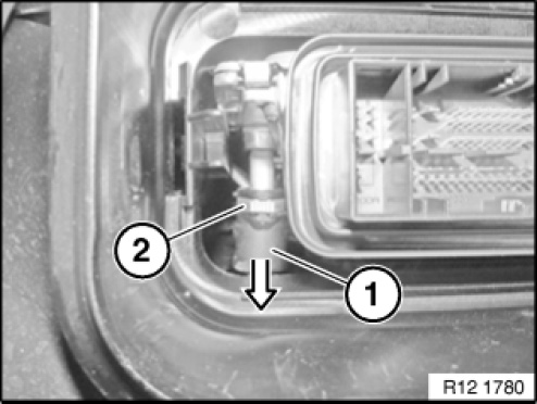 NOTE: Picture shows rear coolant line on control unit, procedure for front is identical.