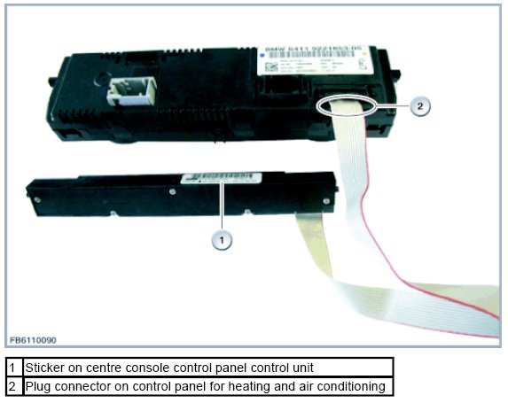 The ribbon cable leading to the heating and air conditioning control panel at the control unit for the centre console control panel (SZM) can be defective. This fault occurs with particular frequency in components produced in the period between 09/2009 and 02/2010 (refer to sticker on control unit). These components were installed in vehicles manufactured up to production dates around 06/2010.