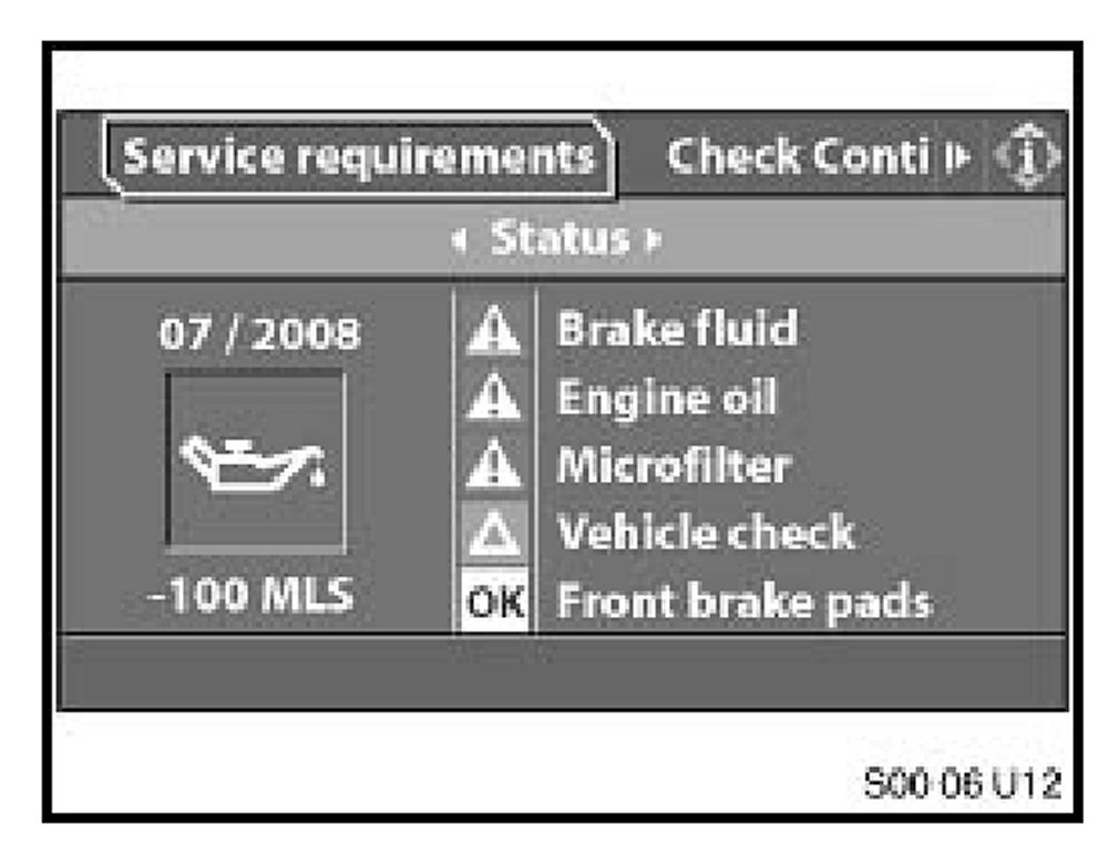 For example: The next mileage-dependent service item is due in 350 miles and the next time-dependent service item is due in 14 months.