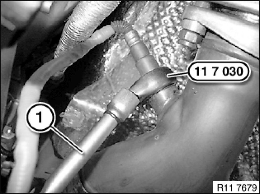 Secure oxygen control sensor with special tool 11 7 030 and a torque wrench (1).