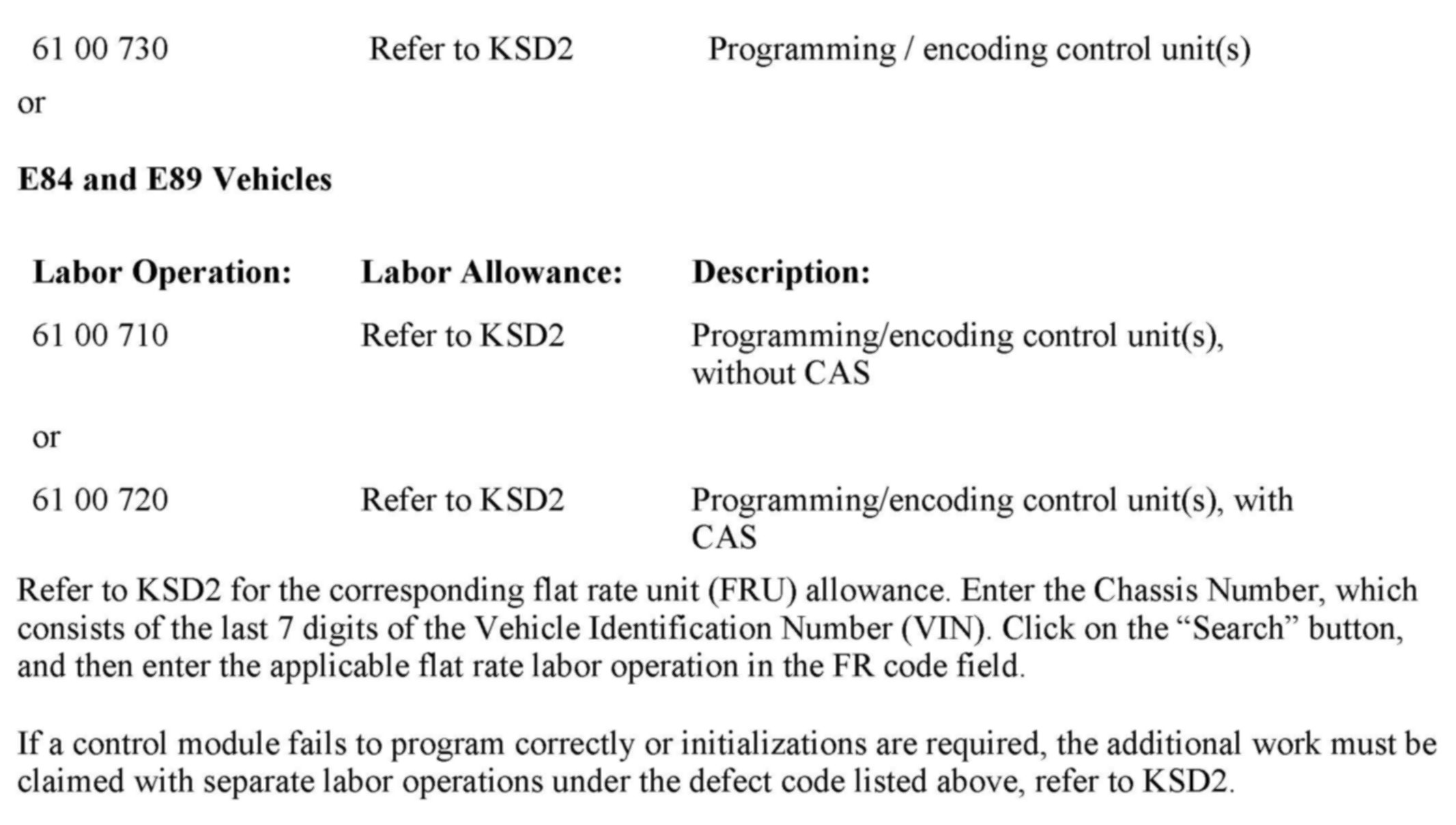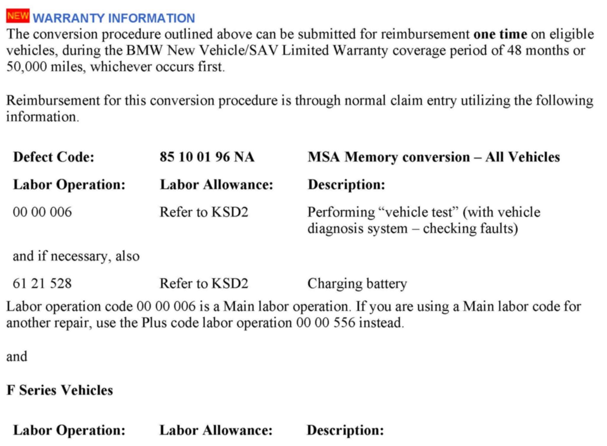 ^ Using the latest version of ISTA/P, perform the conversion "Activate MSA memory," along with a complete vehicle coding and any required programming as determined in the measures plan.
