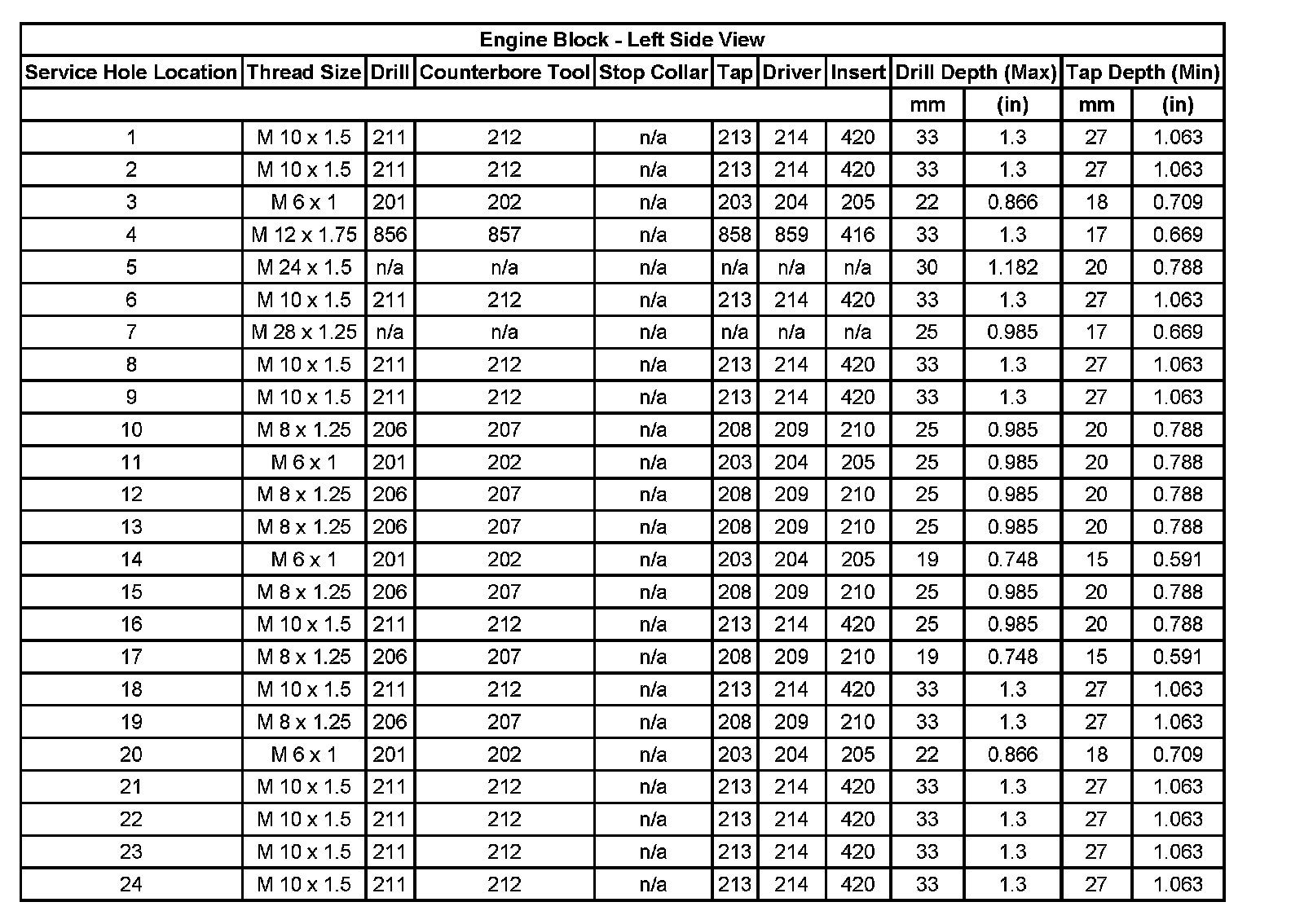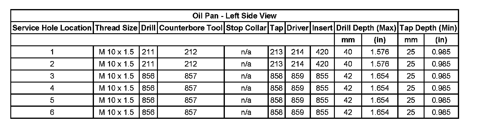Thread Repair Specifications