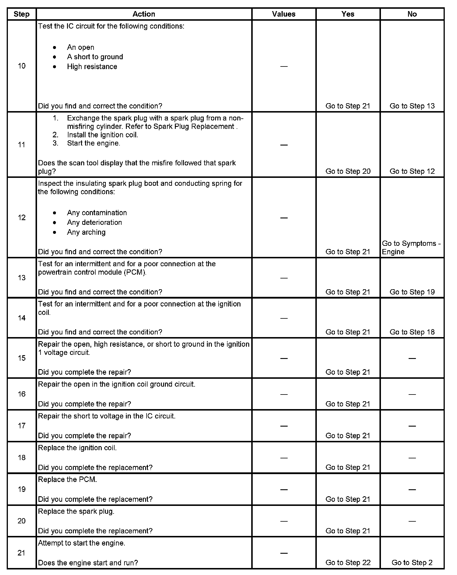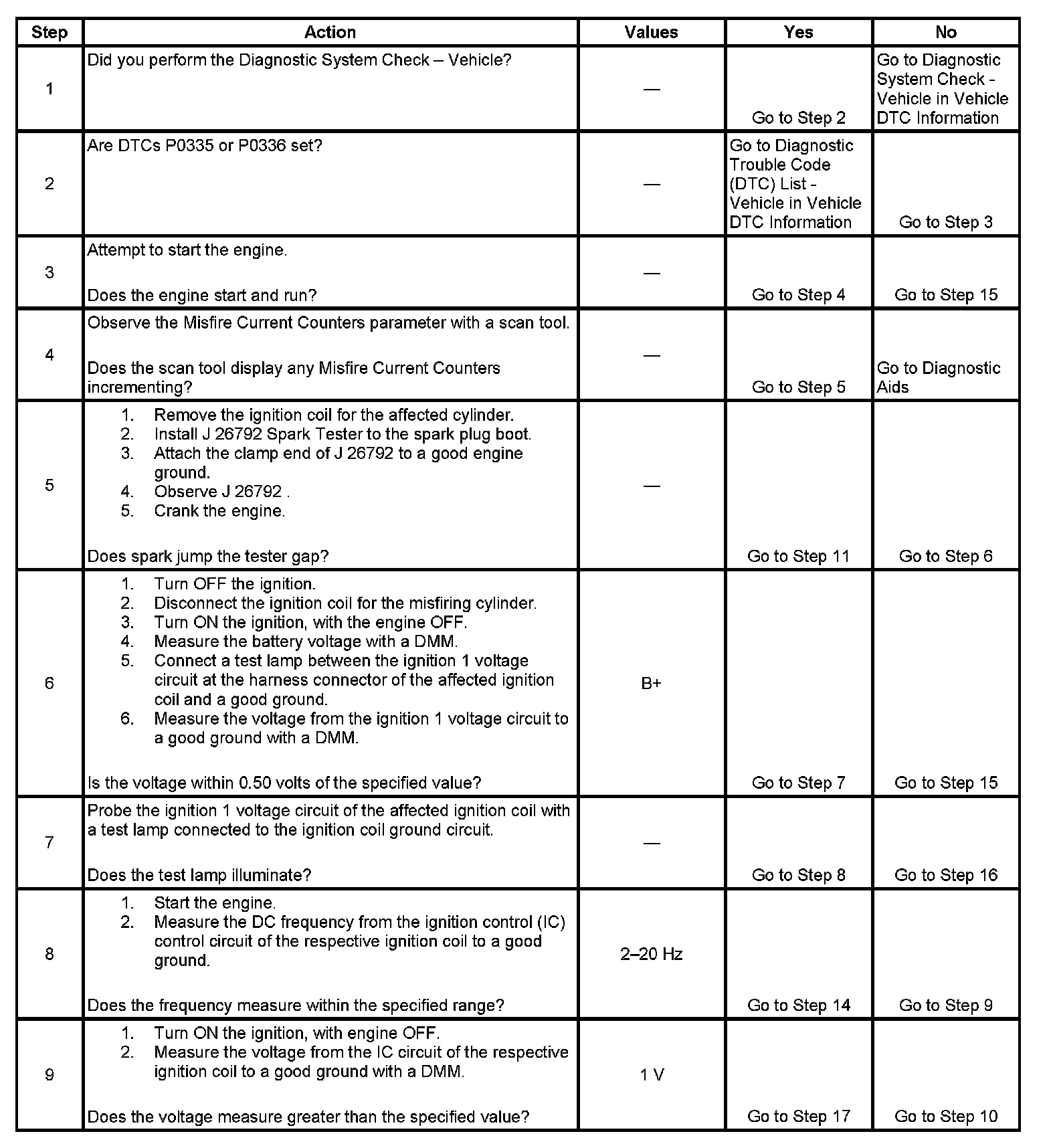 The number below refers to the step number on the diagnostic table.
