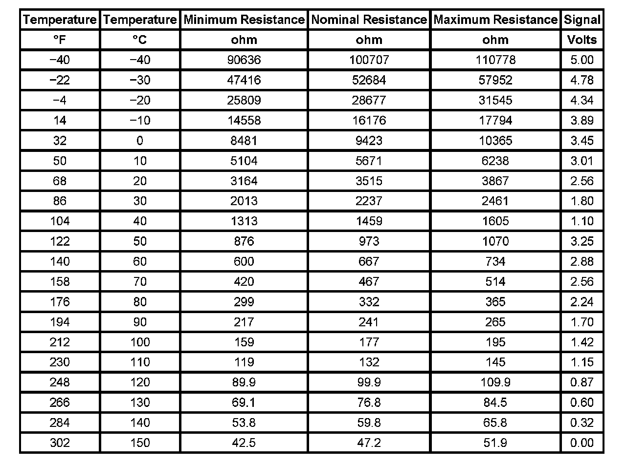 Transmission Fluid Temperature (TFT) Sensor Specifications: