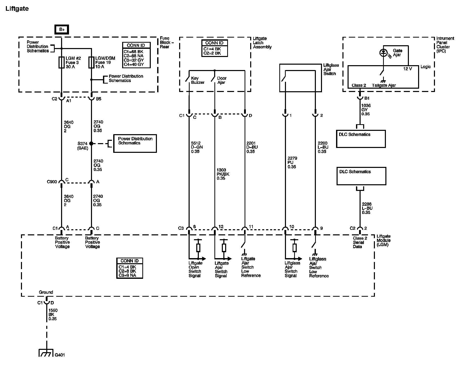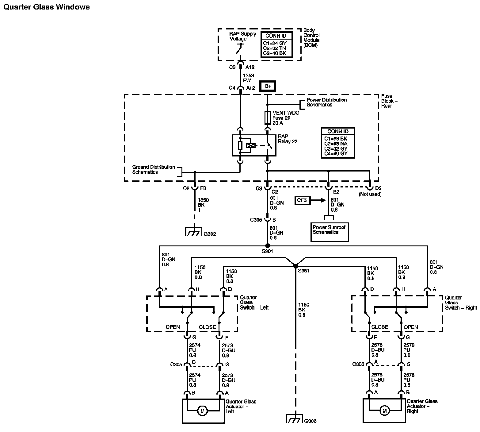 The locations for the Connectors, Grounds, Splices, and Grommets shown within these diagrams can be found via their numbers at Vehicle Locations.