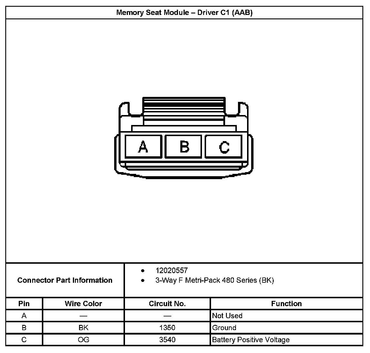 Memory Seat Module - Driver C3 (With RPO Code AAB):