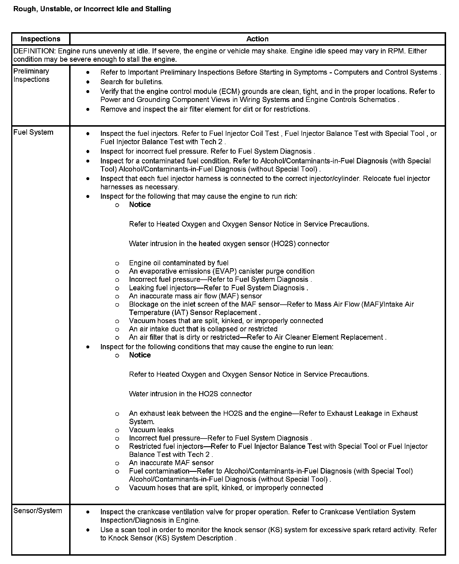 Rough, Unstable, or Incorrect Idle and Stalling