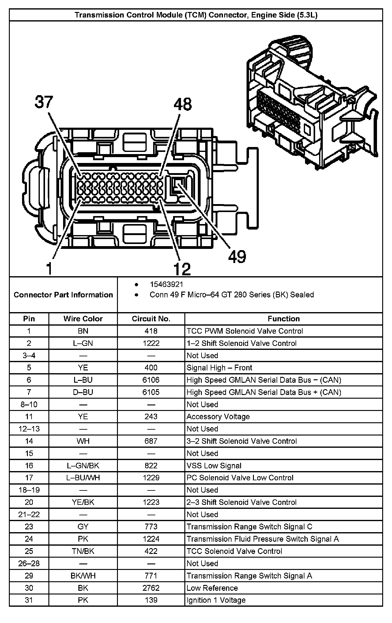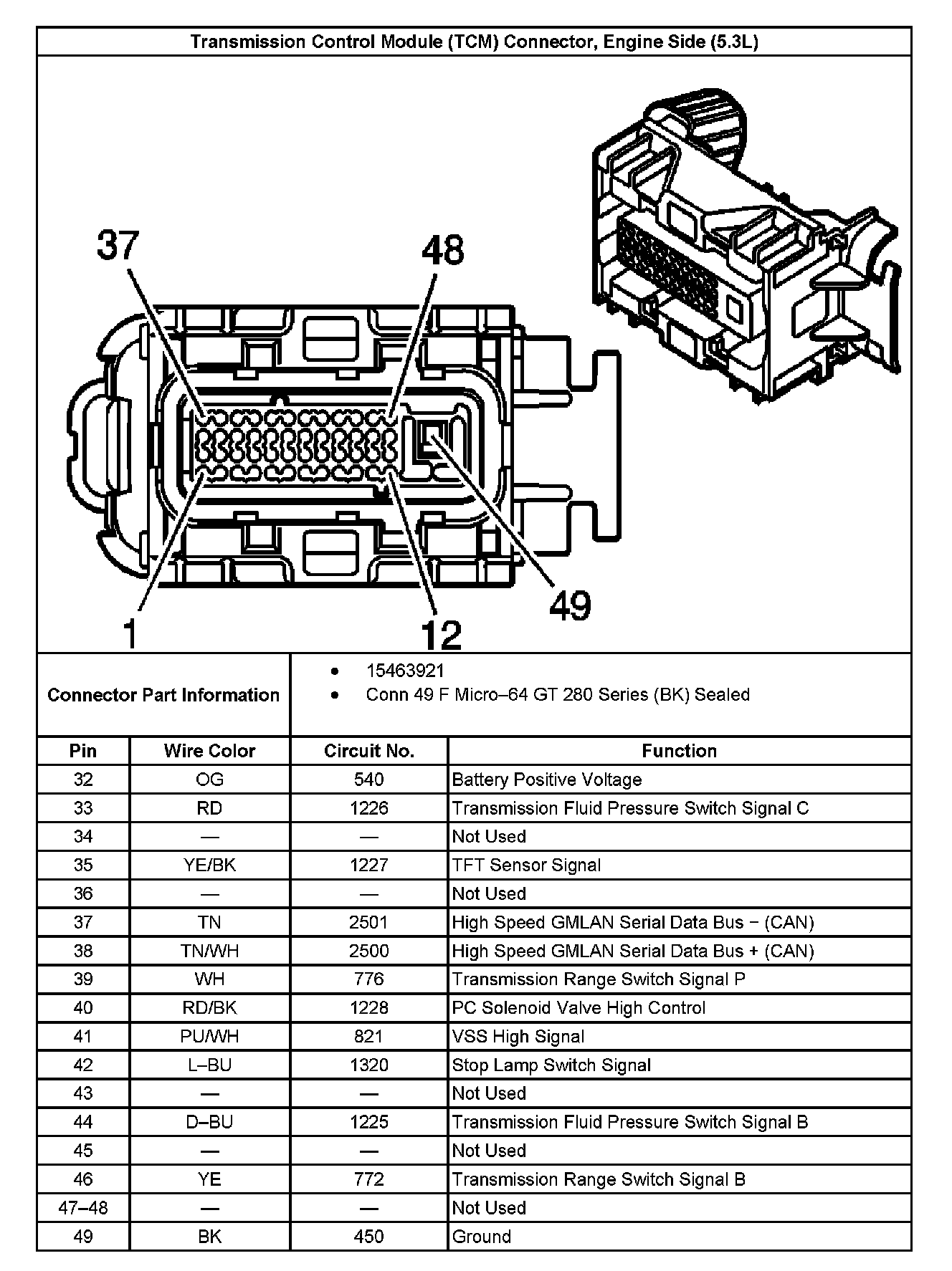 Transmission Control Module (TCM) Connector, Engine Side (5.3L):