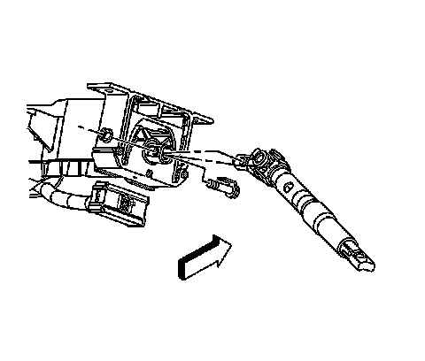 Notice: The front wheels of the vehicle must be maintained in the straight ahead position and the steering column must be in the LOCK position before disconnecting the steering column or intermediate shaft. Failure to follow these procedures will cause improper alignment of some components during installation and result in damage to the Restraint Systems coil assembly.