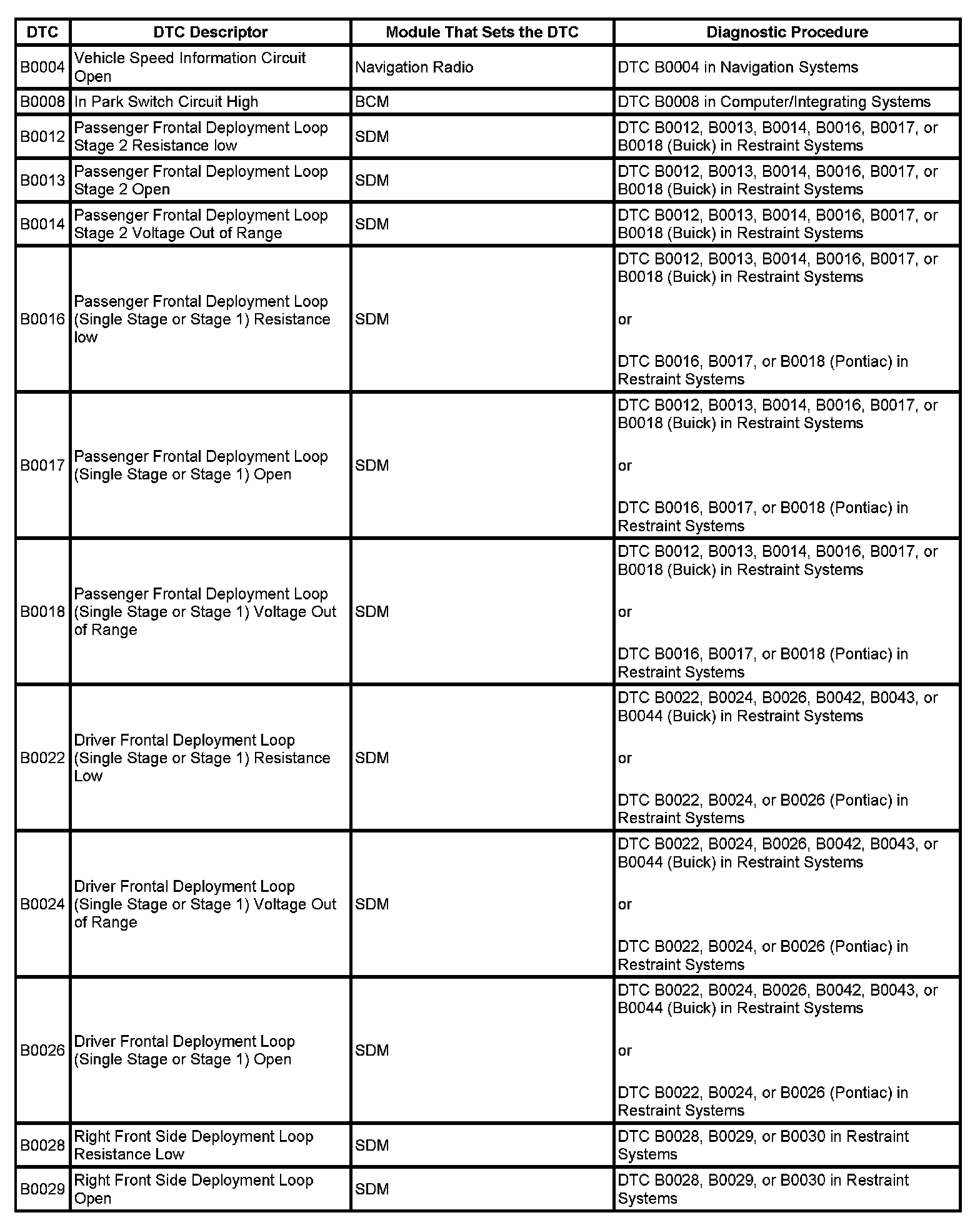 DTC's B0004 - B0029: