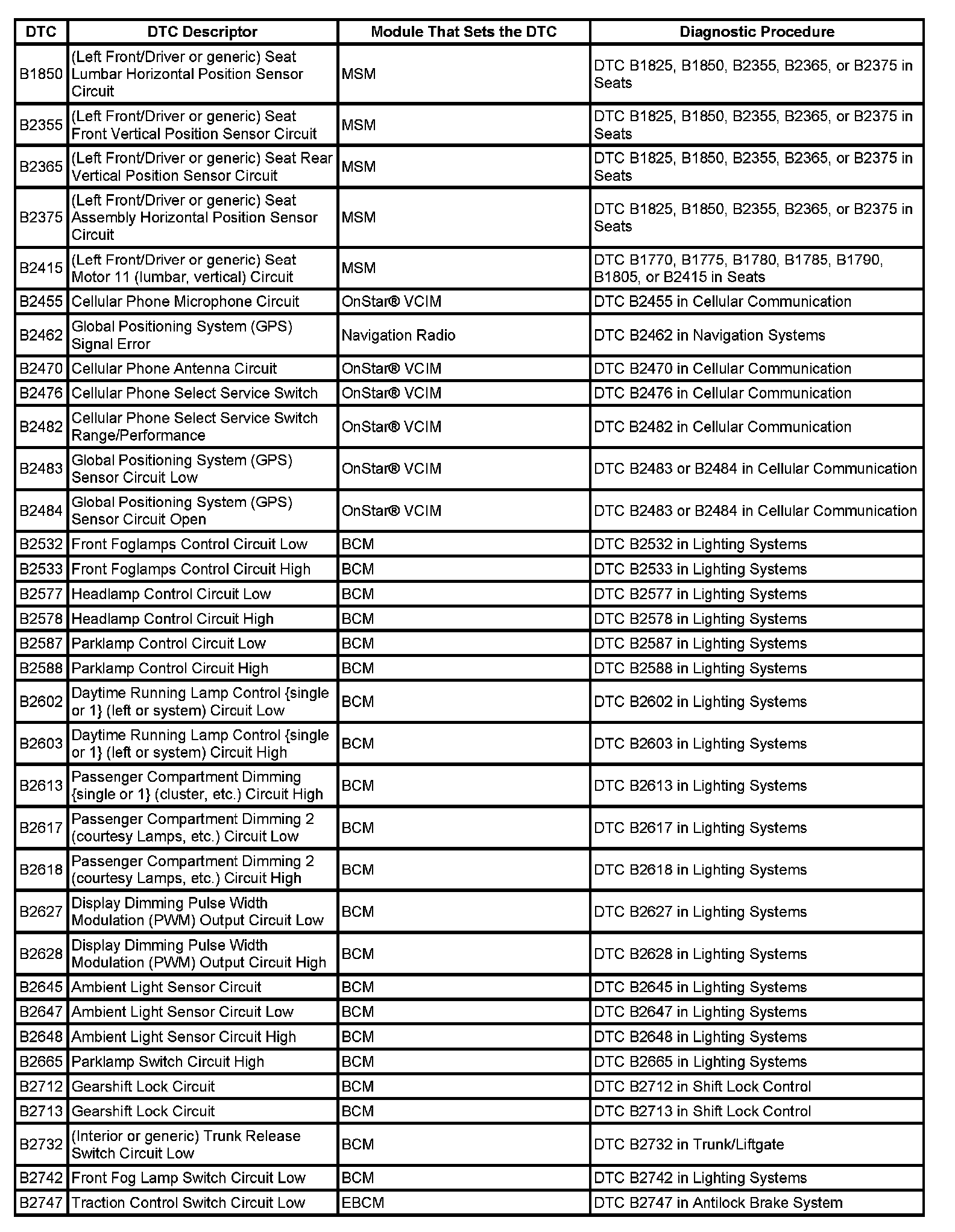 DTC's B1850 - B2747: