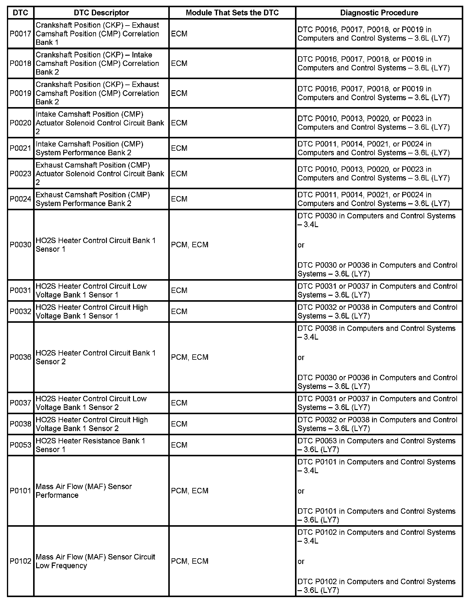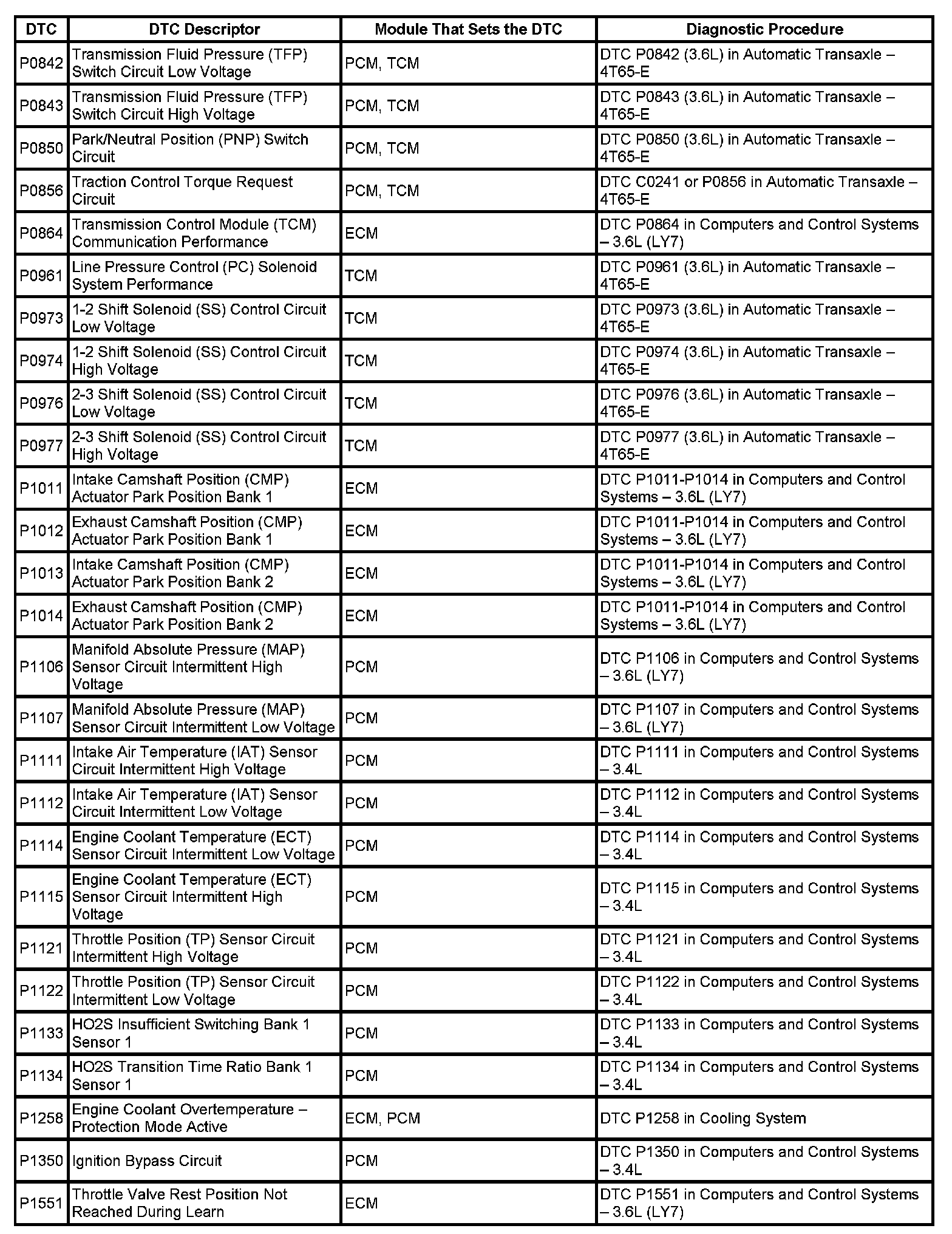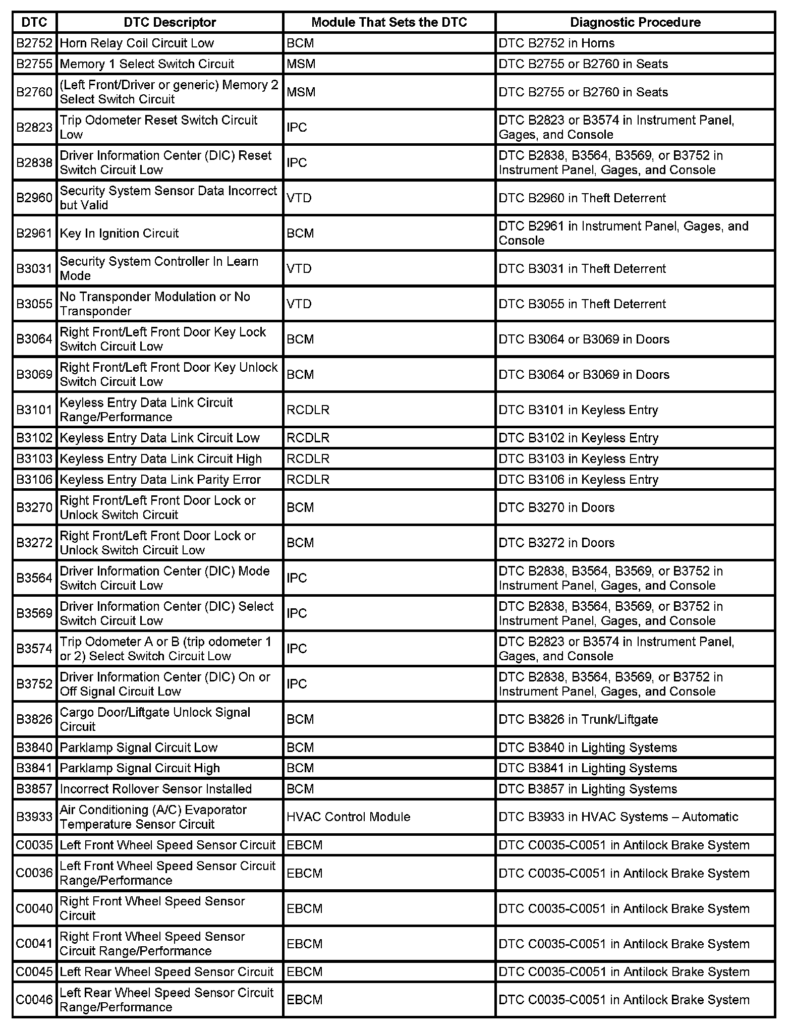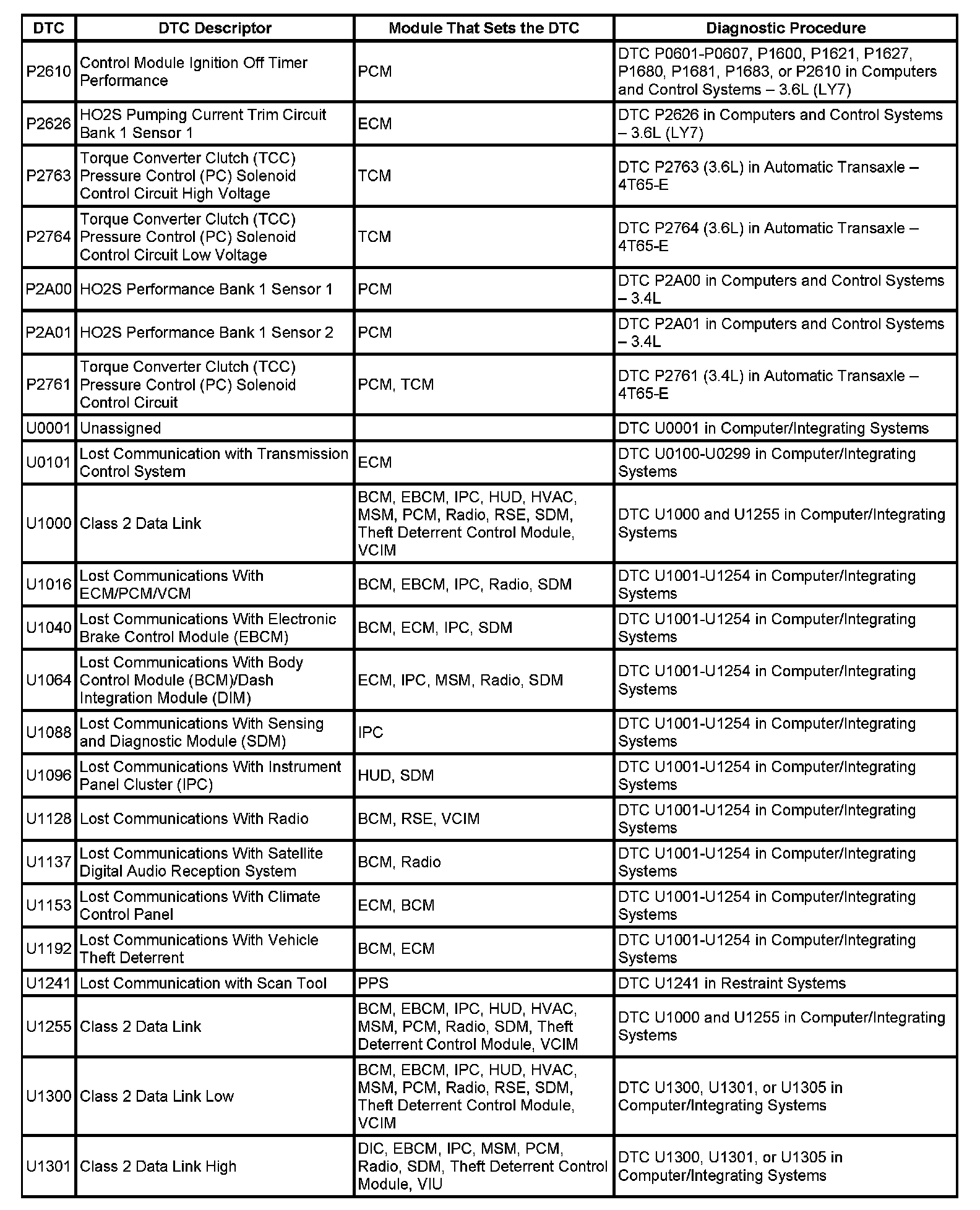 This master DTC list includes all applicable DTCs in alphanumeric order with descriptors.
