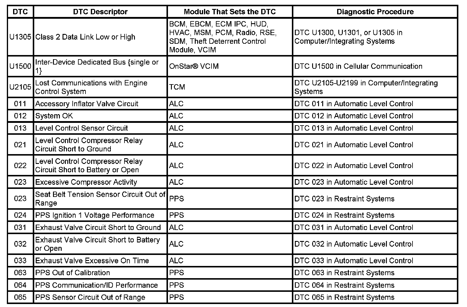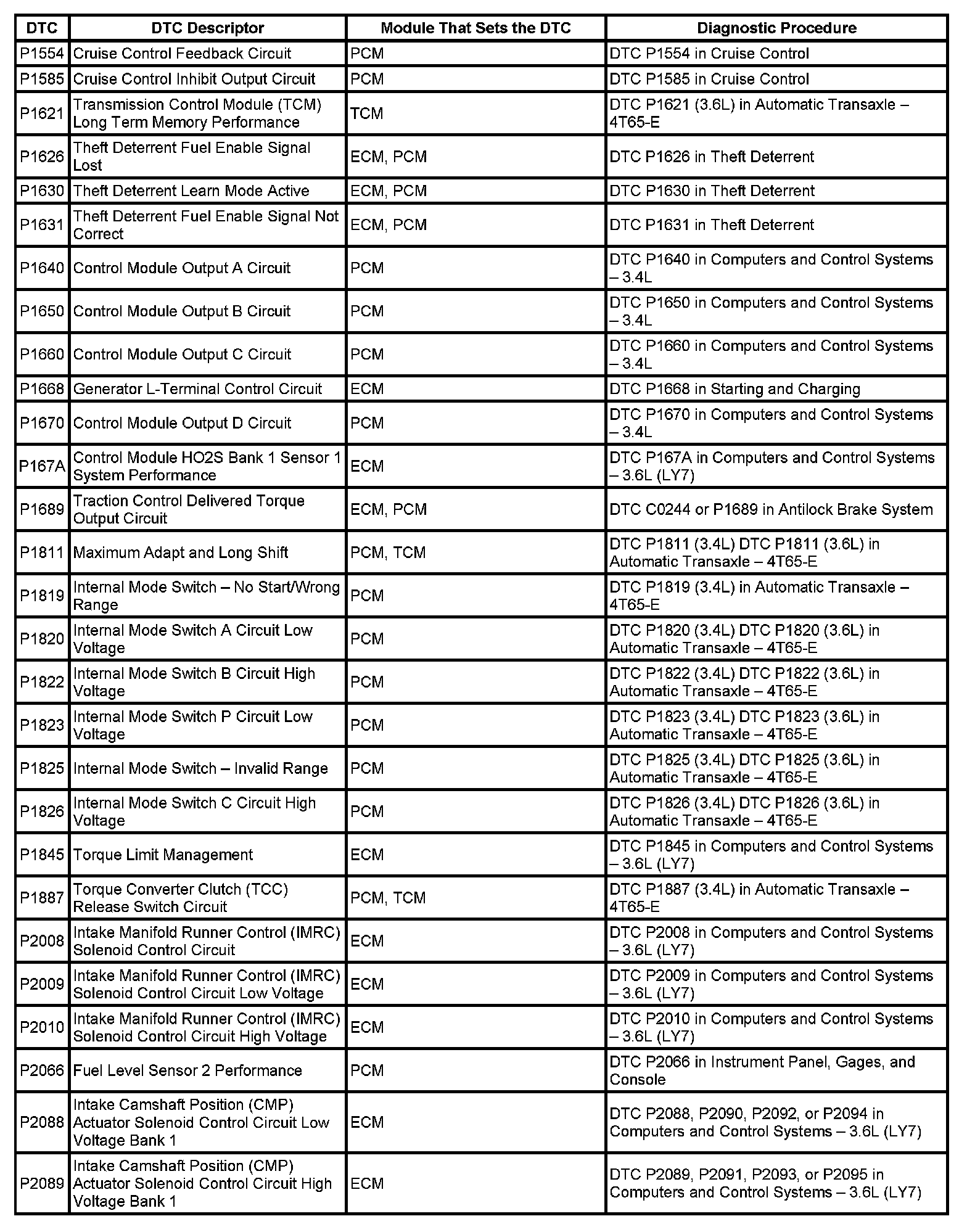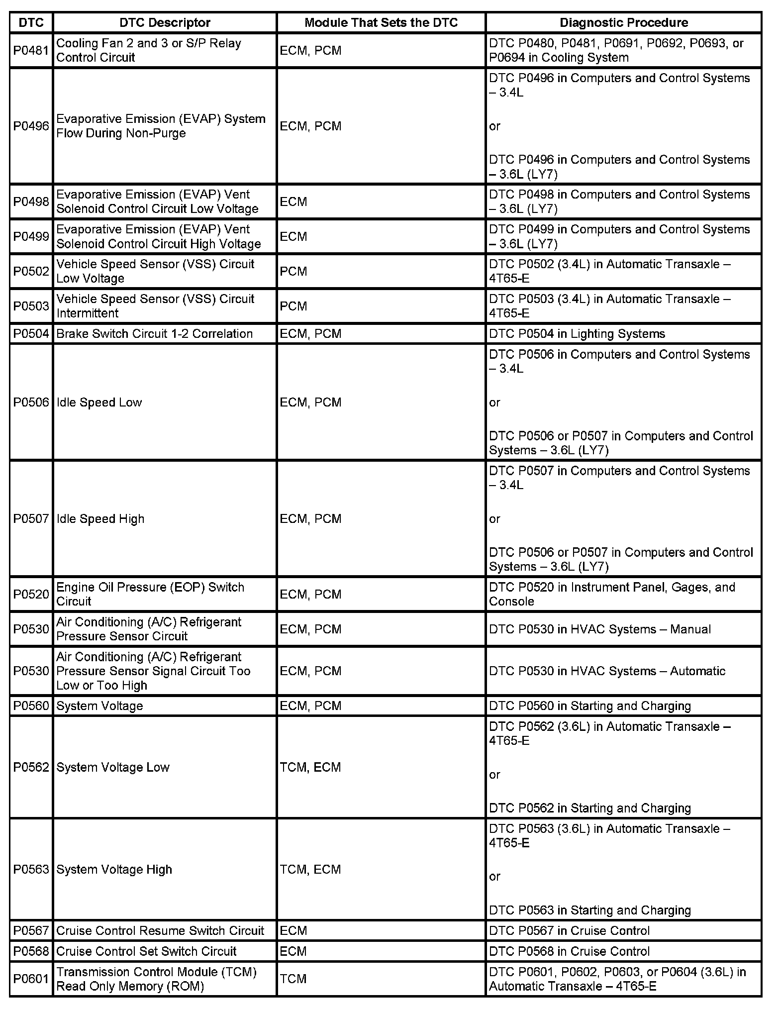 This master DTC list includes all applicable DTCs in alphanumeric order with descriptors.