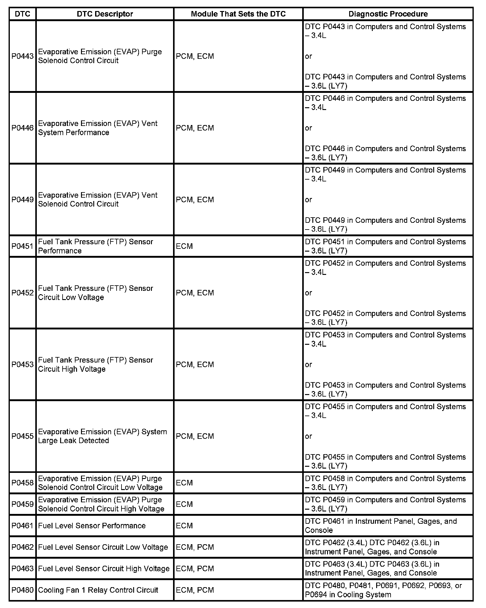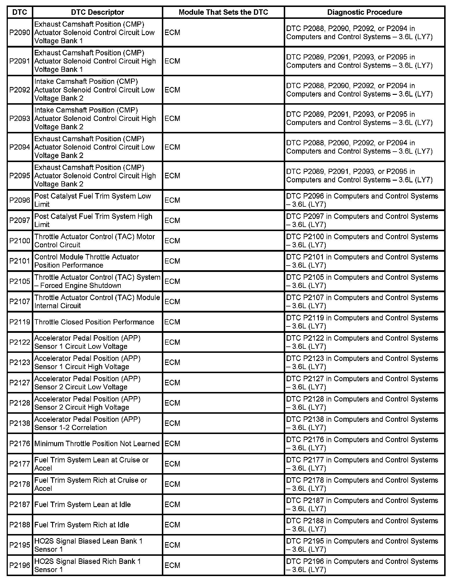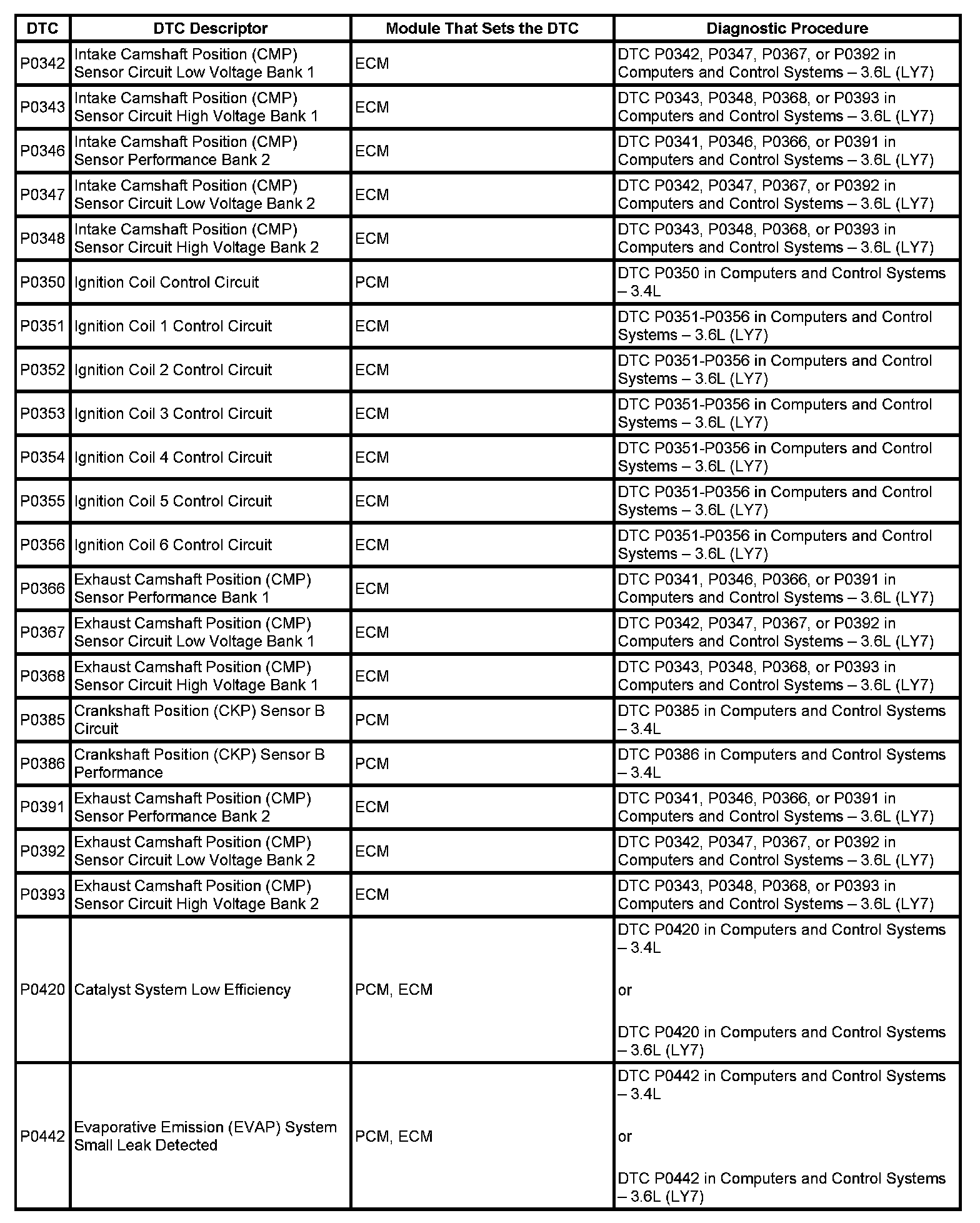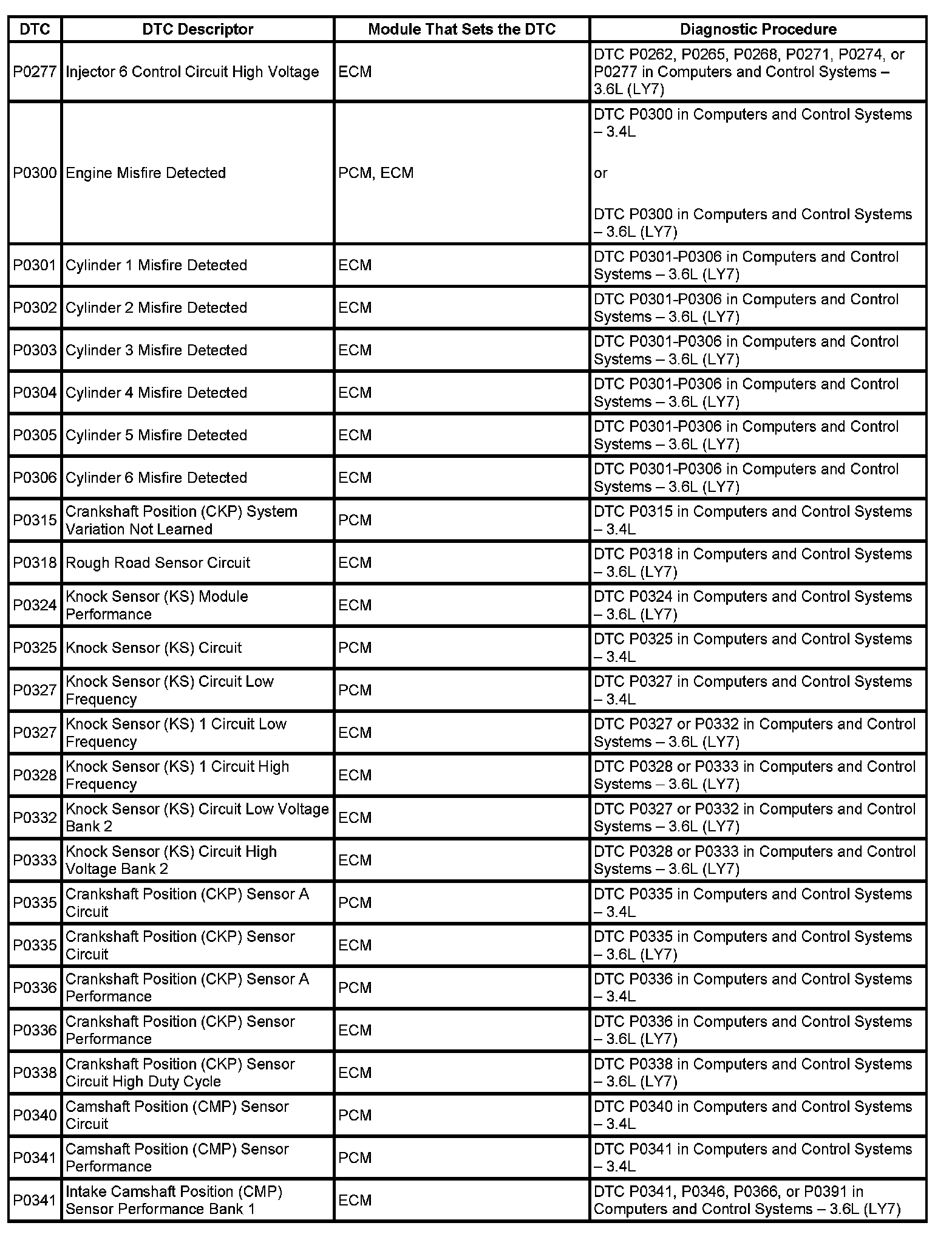 This master DTC list includes all applicable DTCs in alphanumeric order with descriptors.