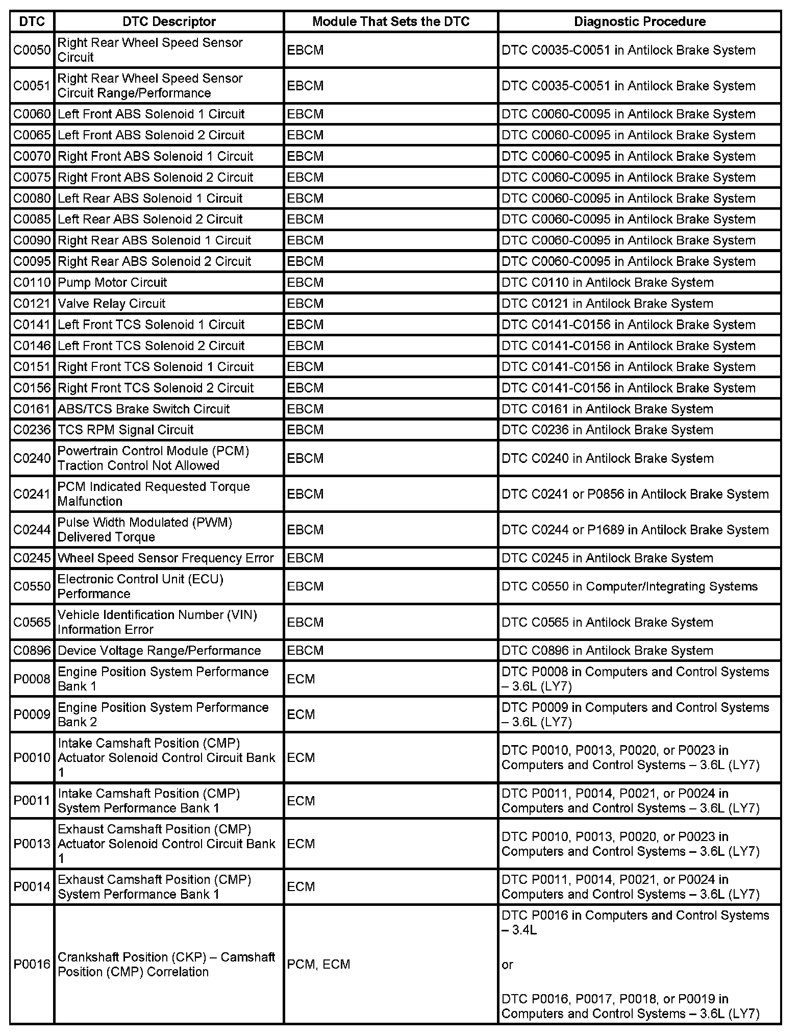 DTC's C0050 - P0016: