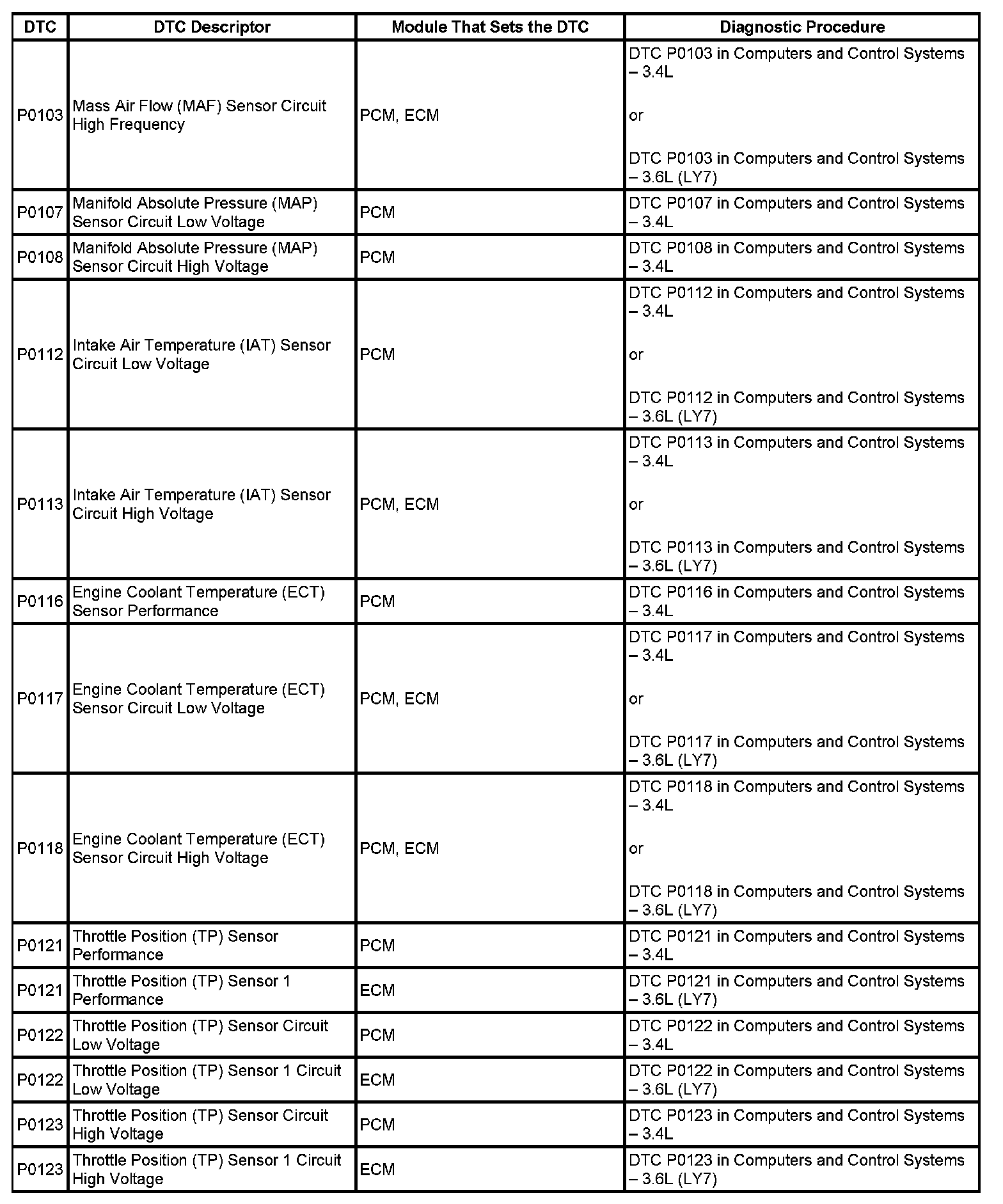 DTC's P0103 - P0123: