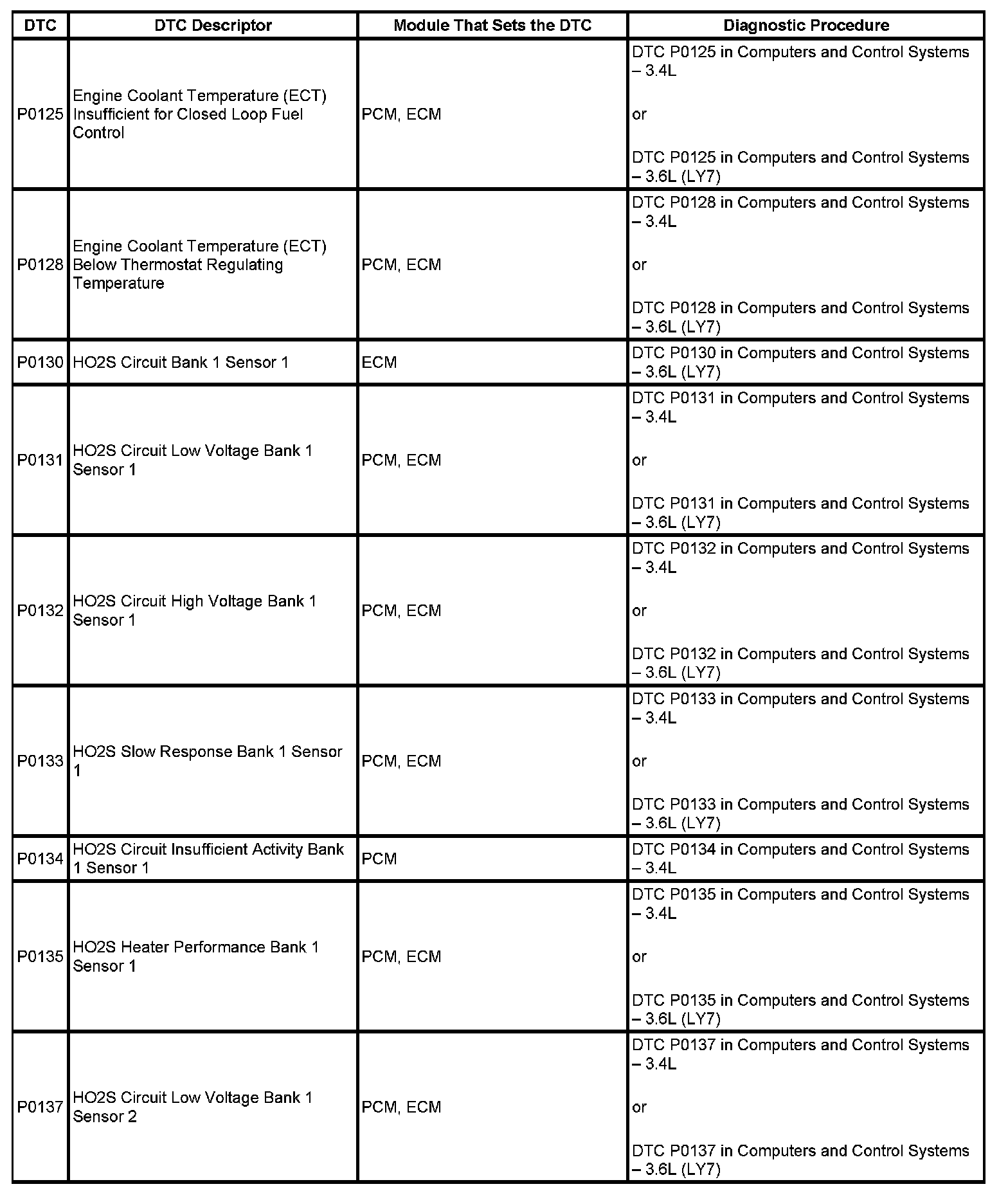 DTC's P0125 - P0137: