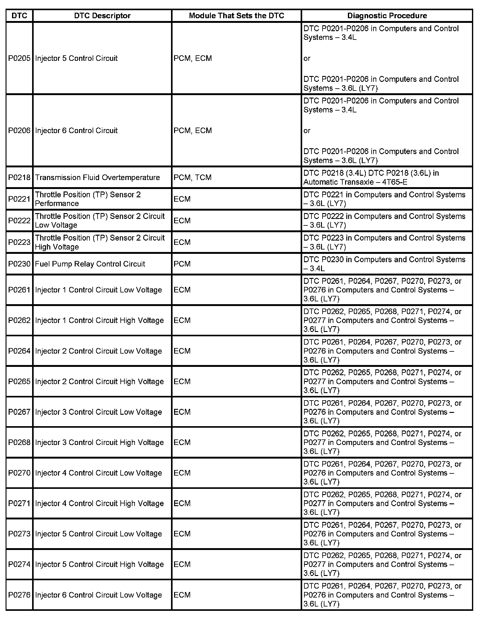 DTC's P0205 - P0276: