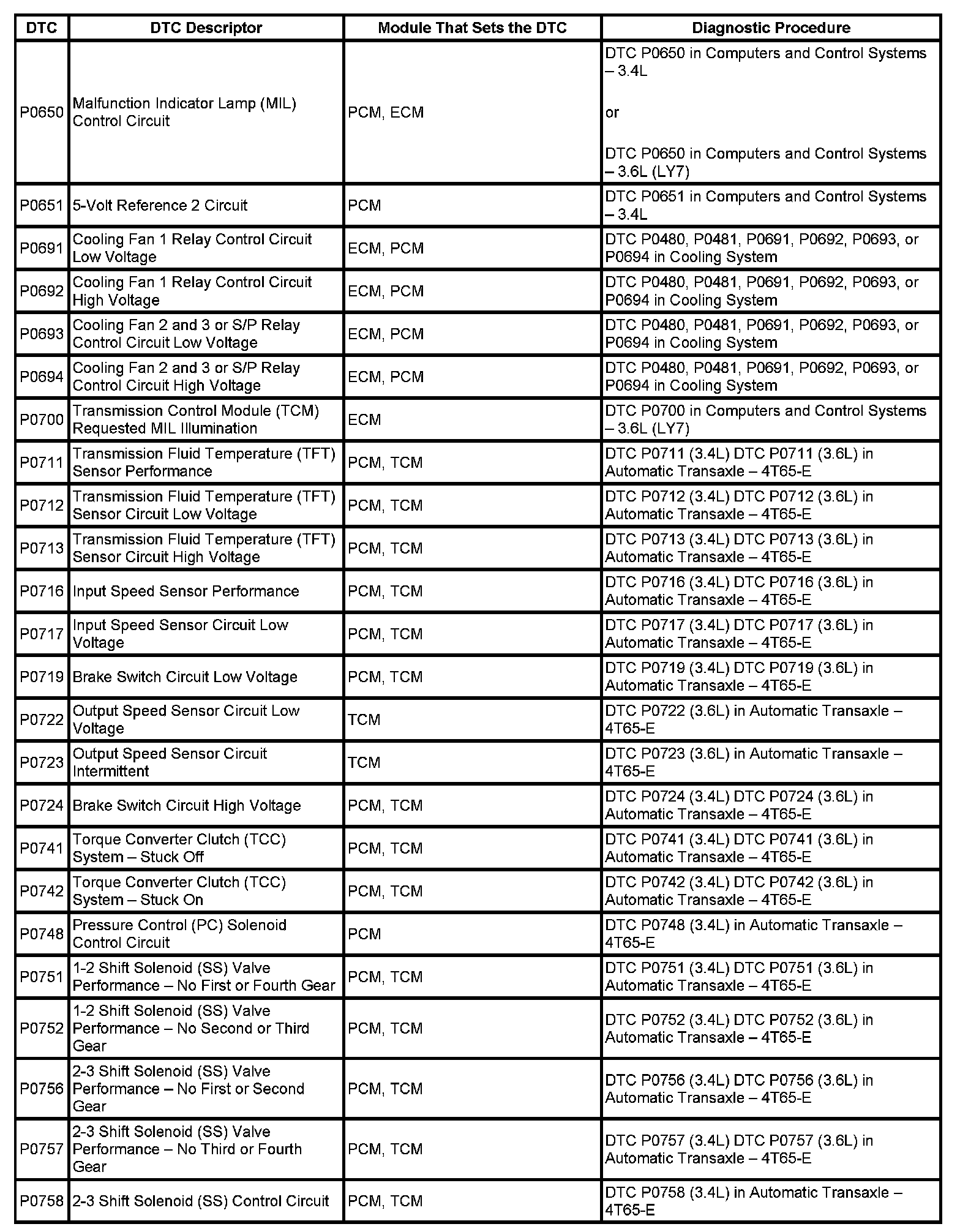 DTC's P0650 - P0758: