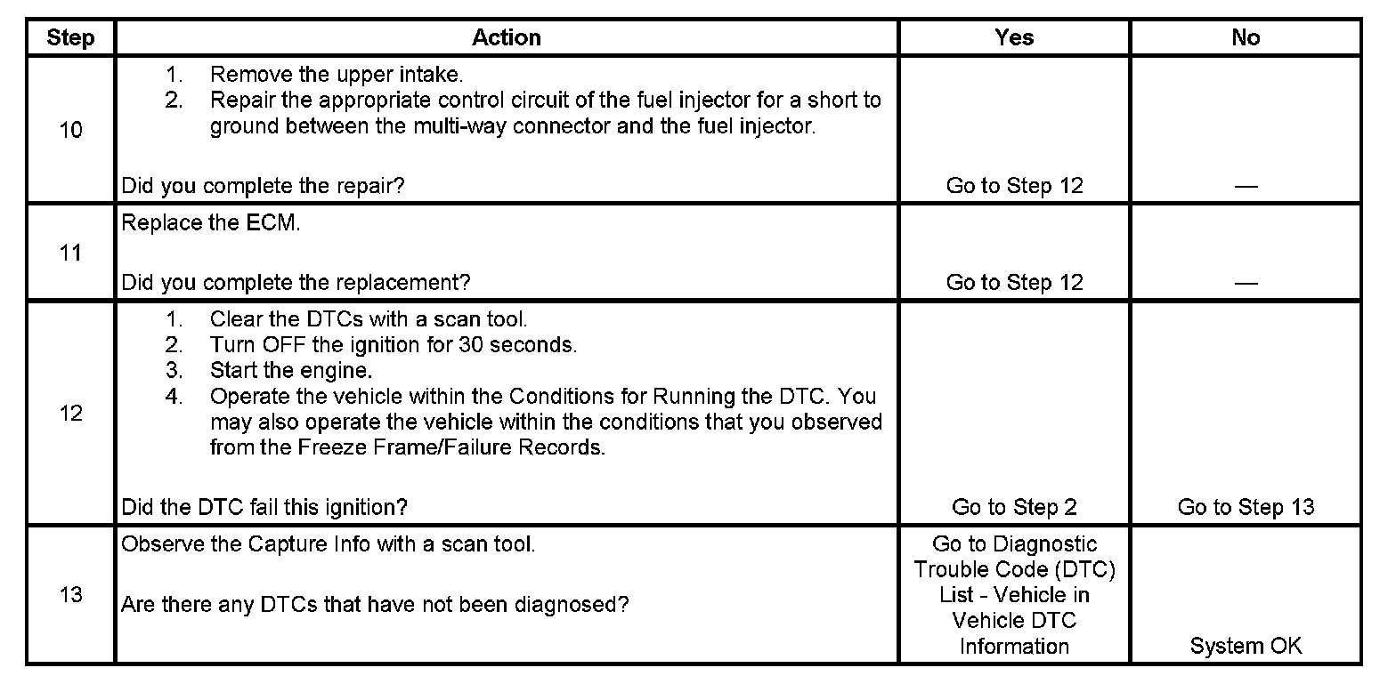 - Performing the fuel injector coil test may help isolate an intermittent condition. Refer to Fuel Injector Coil Test. Component Tests and General Diagnostics