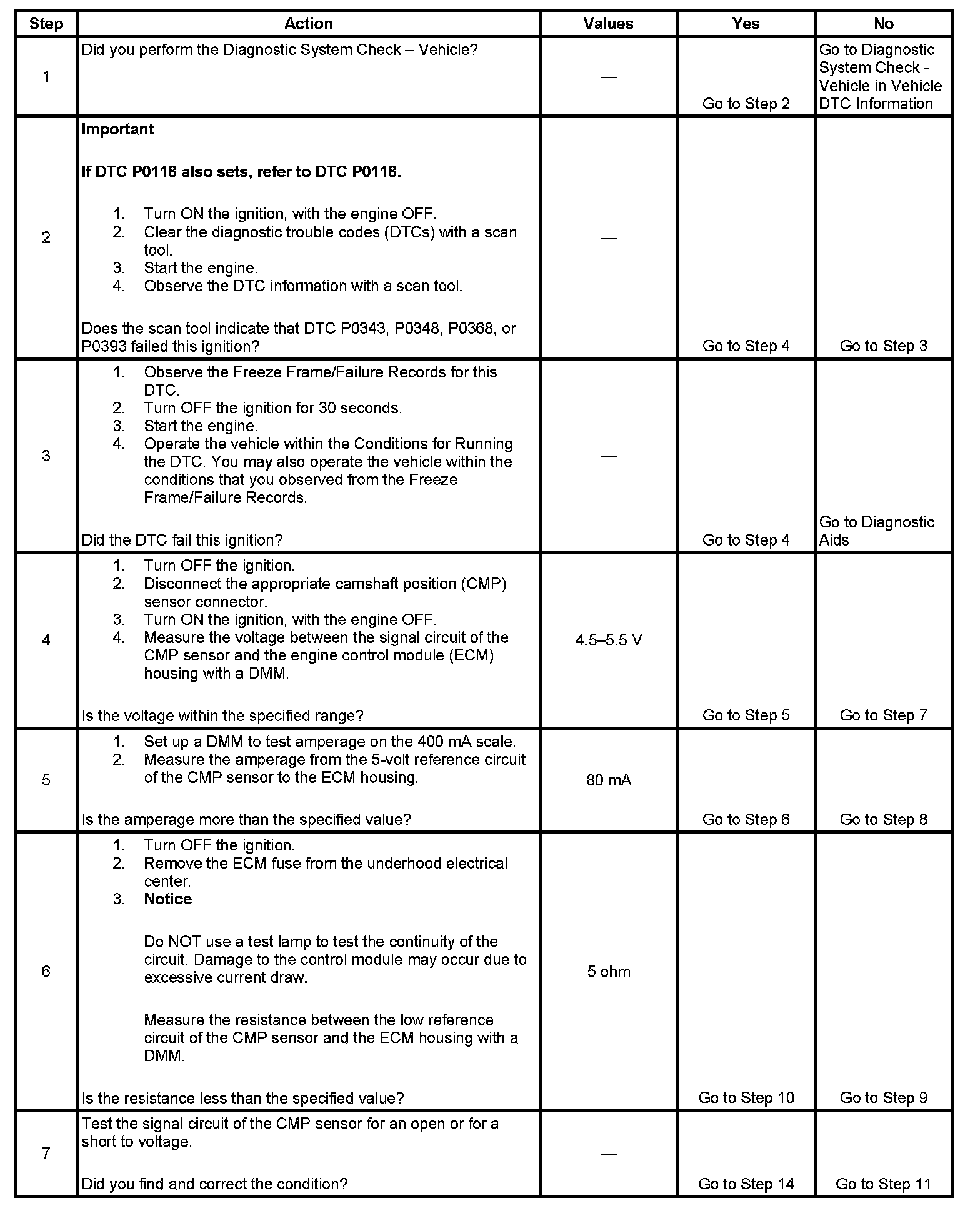 - DTC P0343 Intake Camshaft Position (CMP) Sensor Circuit High Voltage Bank 1