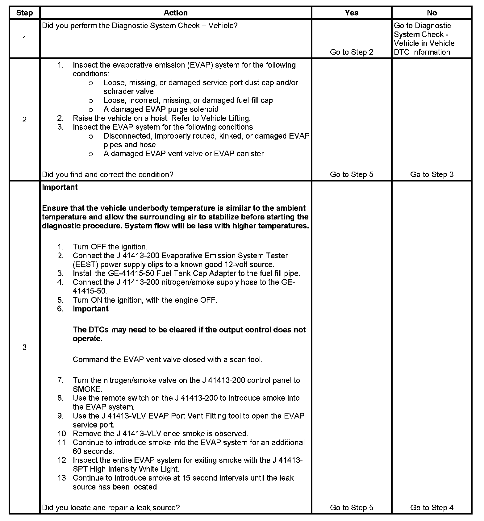 - To help locate an intermittent leak, use the J 41413-200 Evaporative Emission System Tester (EEST) to introduce smoke into the EVAP system. Move all EVAP components while observing smoke with the J 41413-SPT High Intensity White Light. Introducing smoke in 15 second intervals will allow less pressure into the EVAP system. When the system is less pressurized, the smoke will sometimes escape in a more condensed manner.