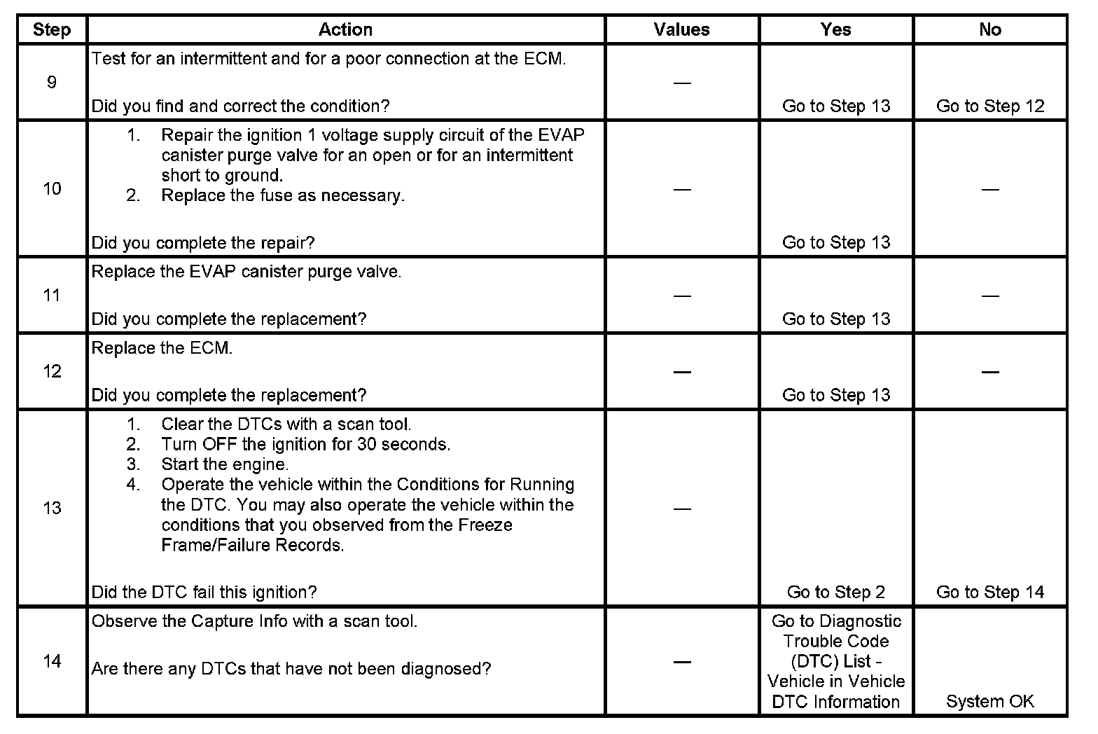 - The ECM detects the voltage on the EVAP canister purge valve control circuit is between 2.6-4.6 volts when the driver is commanded OFF.