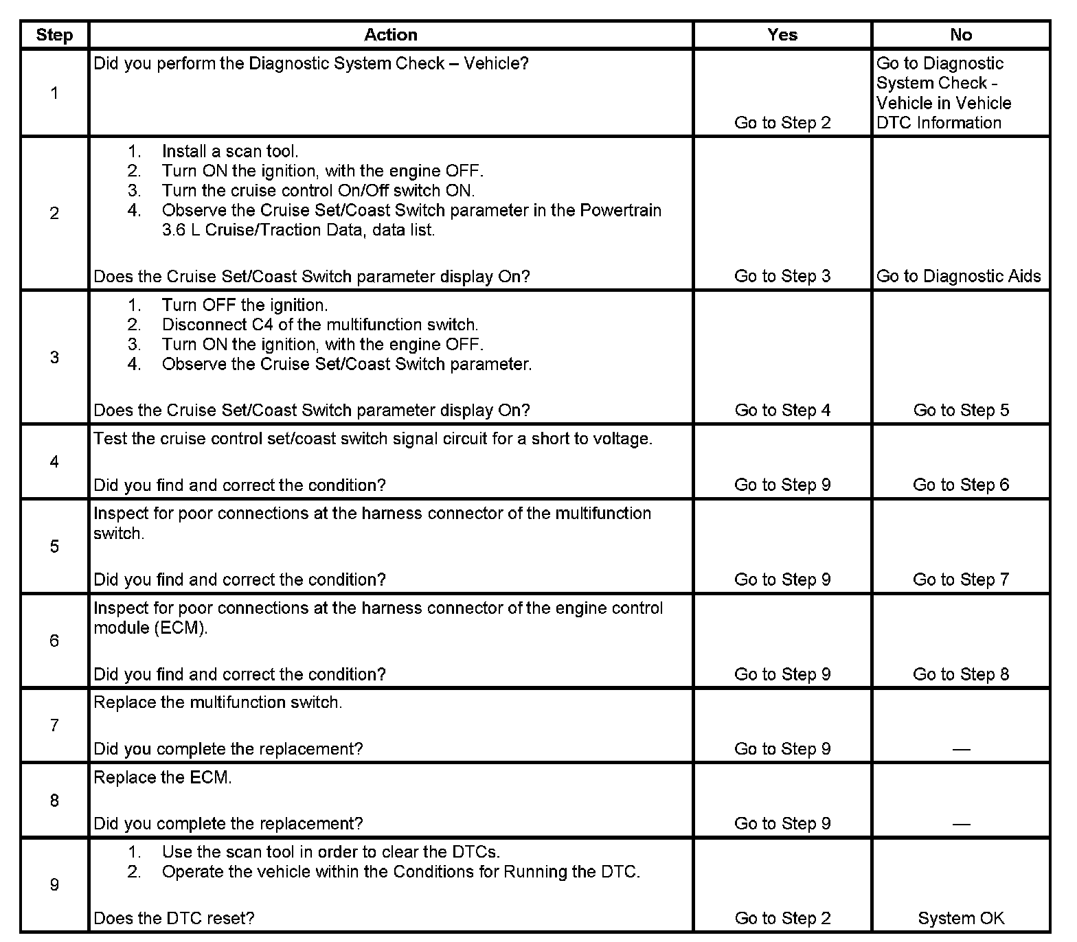 - This DTC sets if the ECM Detects a voltage signal on the cruise control set/coast switch signal circuit for greater than 60 seconds.