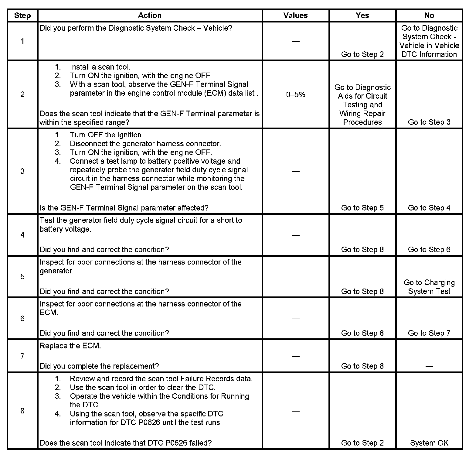 DTC P0626 Generator F- Terminal Circuit High Voltage