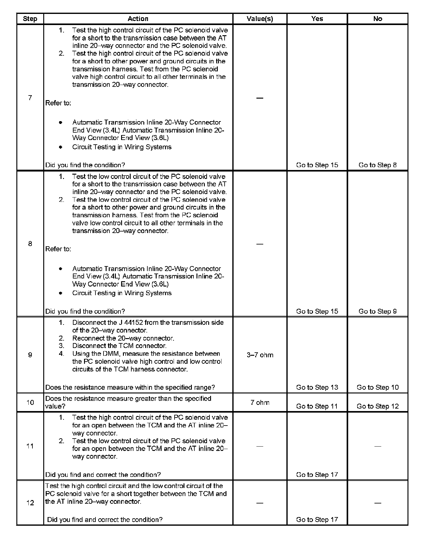 ^ If a circuit fault is detected 3 times during normal operation, then the TCM de-energizes the PC solenoid valve for the remainder of that ignition cycle.