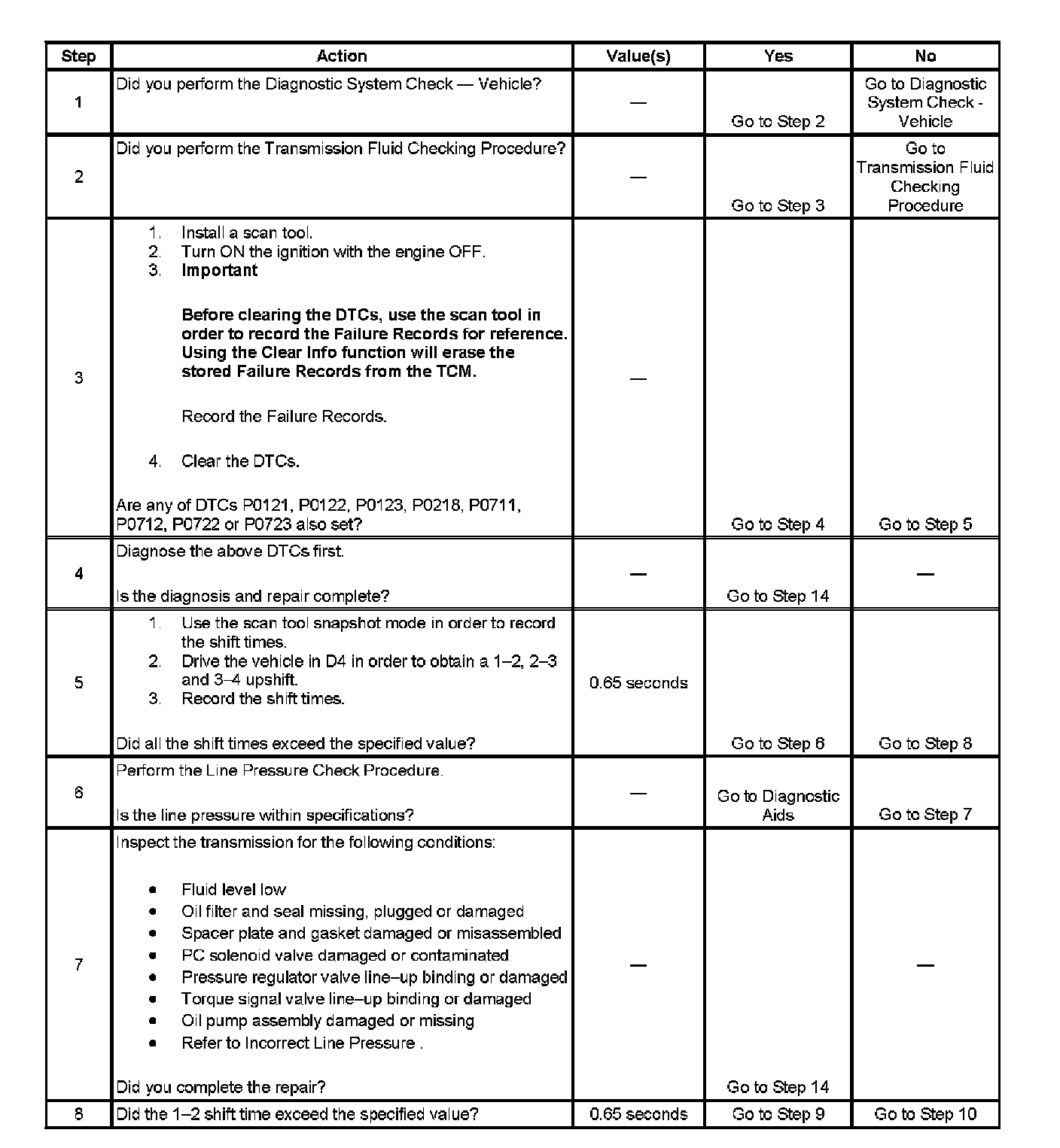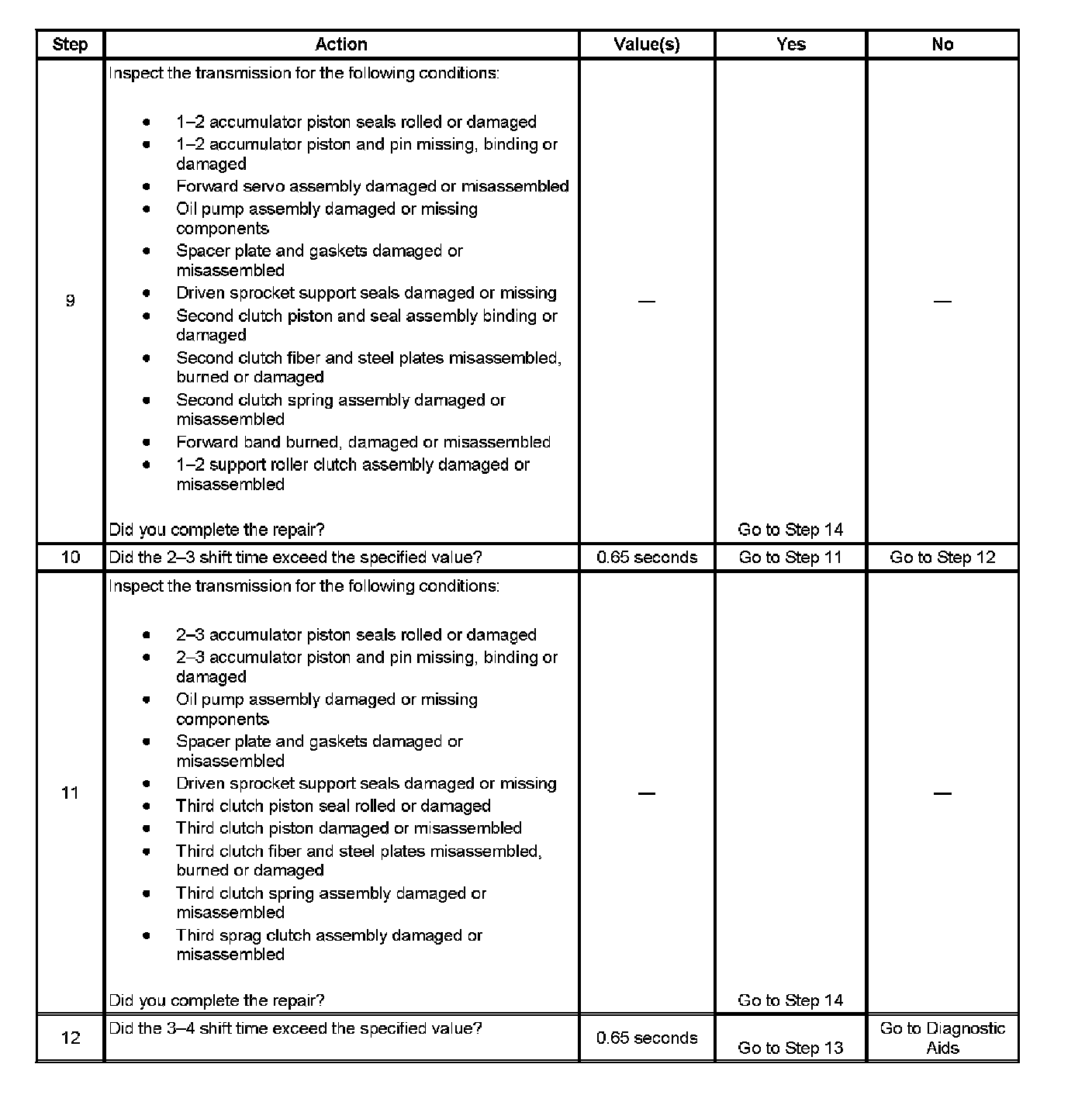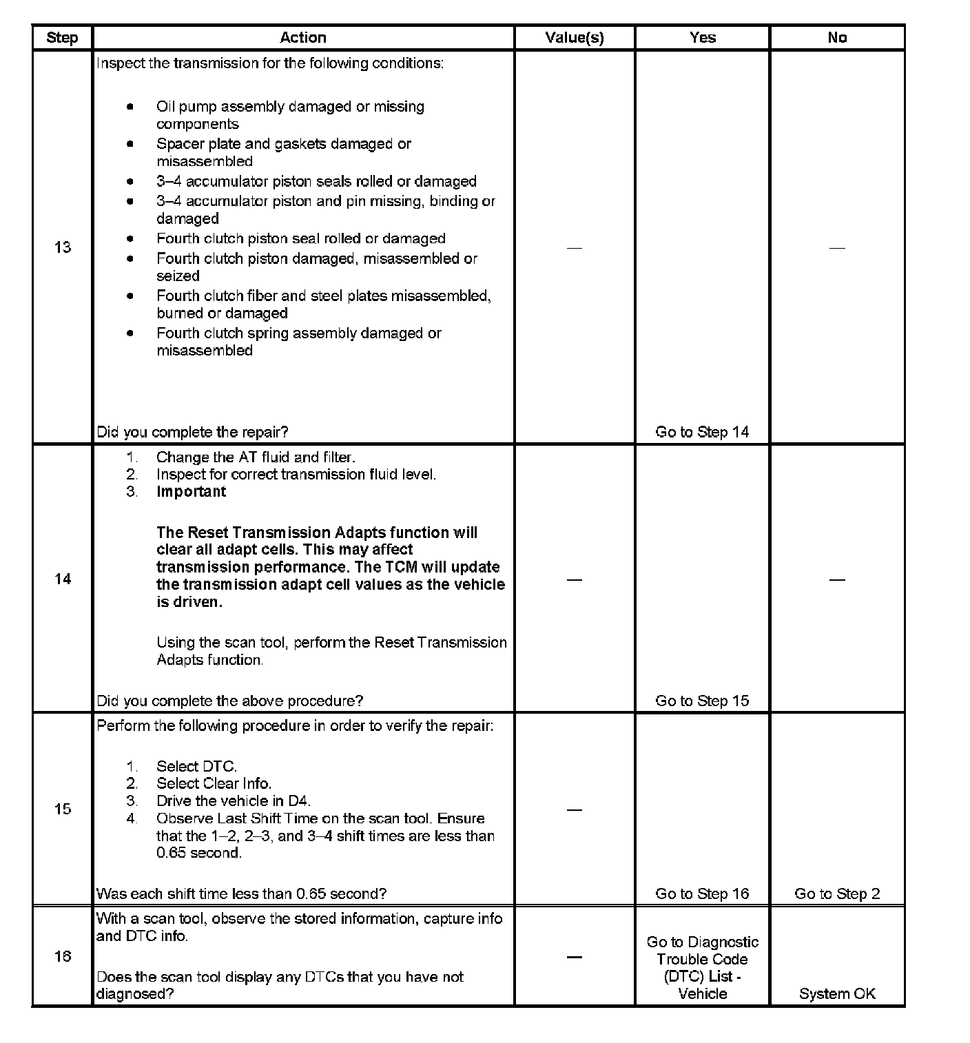 13. This step inspects or repairs components that may cause a maximum adapt and long 3-4 upshift.