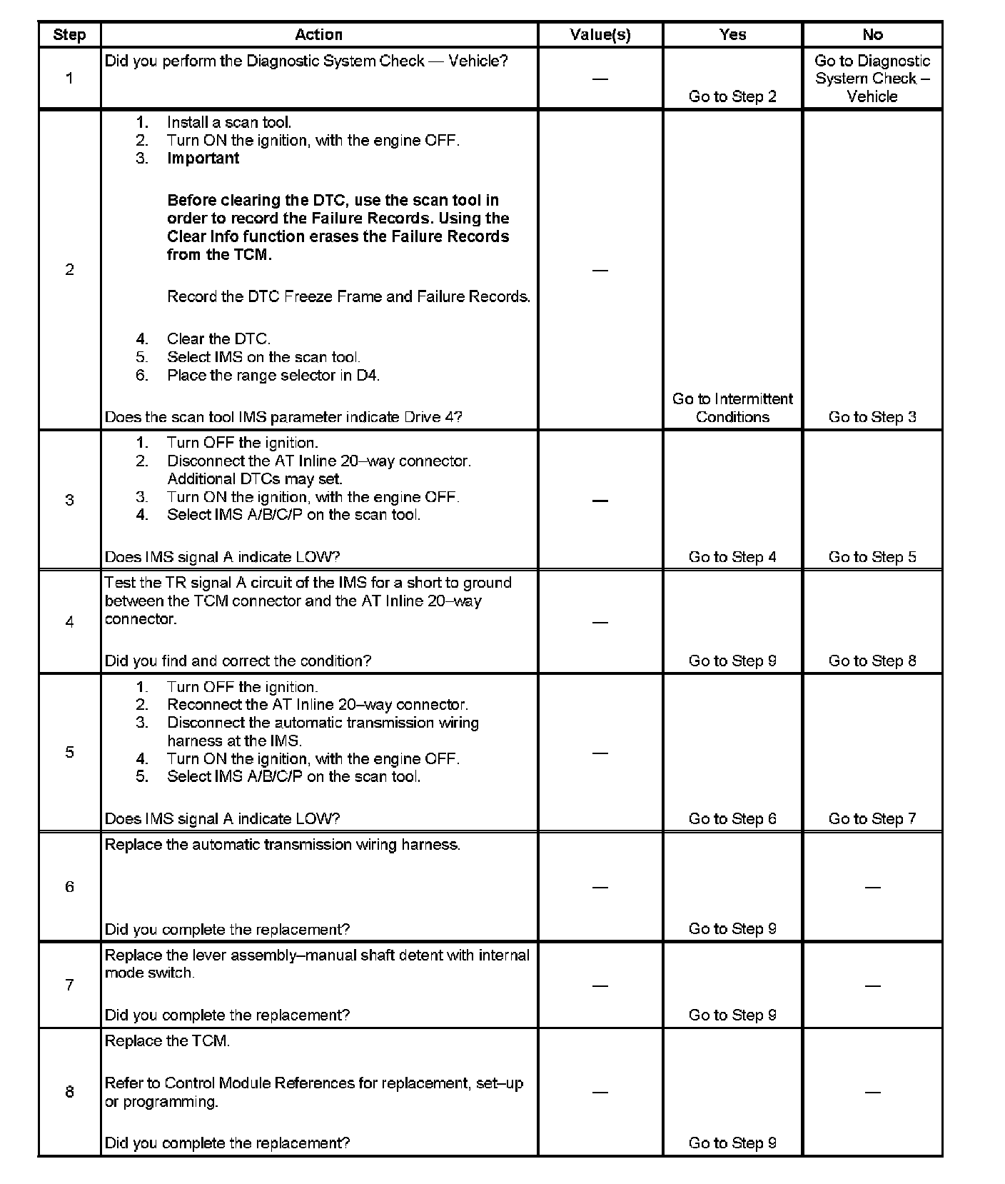 ^ The TCM requests the ECM to illuminate the malfunction indicator lamp (MIL) during the second consecutive trip in which the Conditions for Setting the DTC are met.