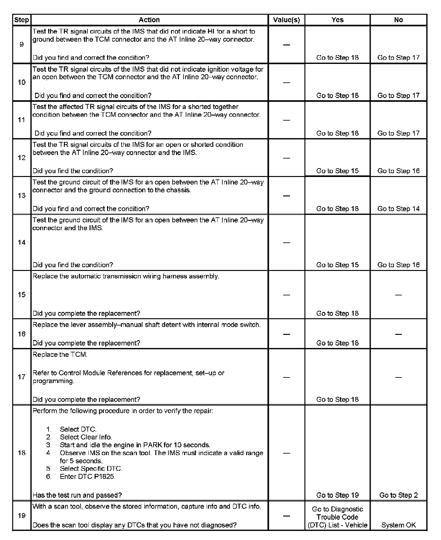 If the TCM detects an invalid transmission range with the engine running, then DTC P1825 sets. DTC P1825 is a type B DTC.