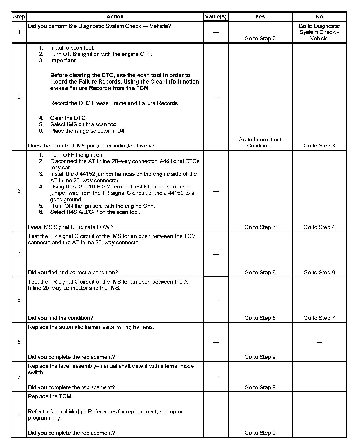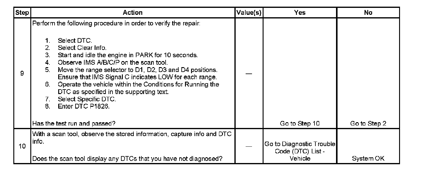If the TCM detects that IMS Signal C is high while the vehicle is being driven in a forward gear, then DTC P1826 sets. DTC P1826 is a type B DTC.