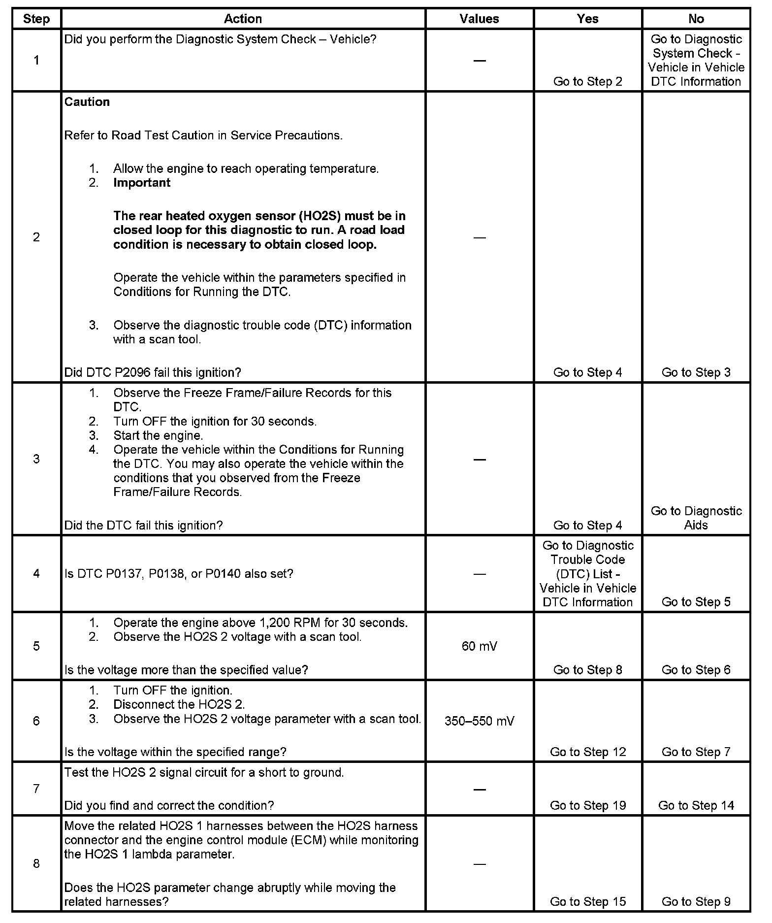 - Before the ECM can report DTC P2096 failed, DTCs P0030, P0031, P0032, P0036, P0037, P0038, P0053, P0101, P0130, P0131, P0132, P0135, P0137, P0138, P0140, P0141, P167A, P2231, P2243, P2251, P2270, P2271, and P2626 must run and pass.