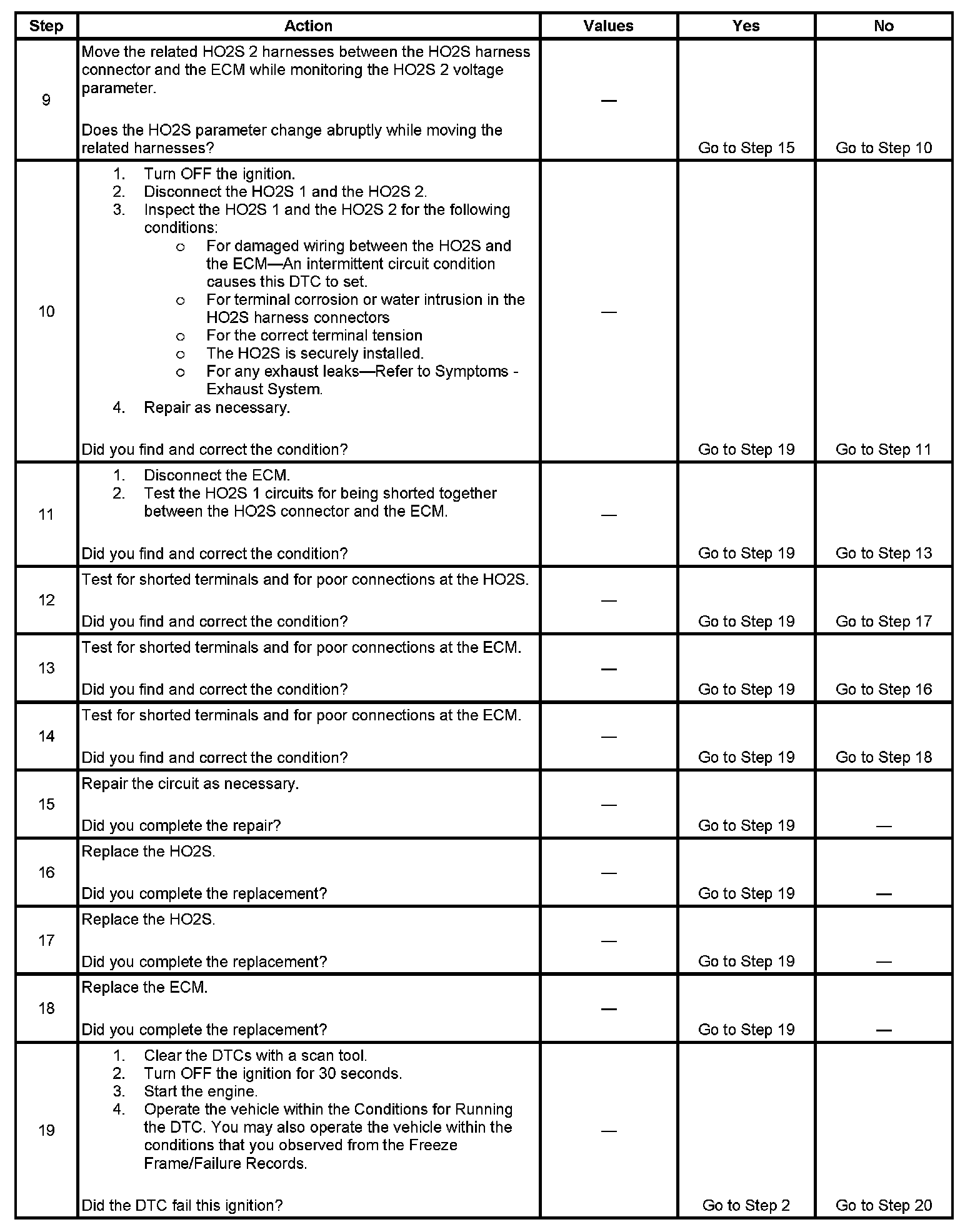 9. This step is testing for an intermittent circuit condition. Thoroughly inspect the HO2S circuits for an intermittent circuit condition.