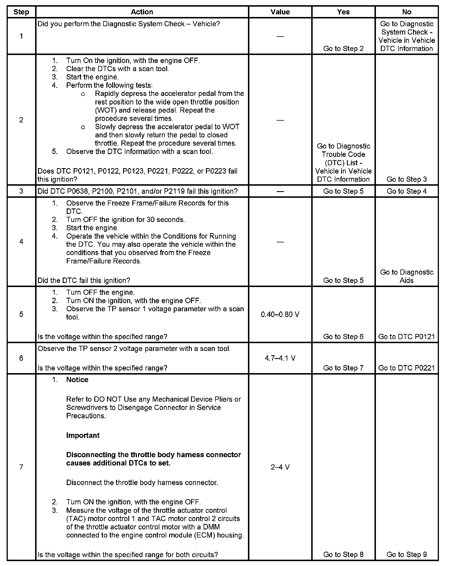 2. This step determines if the condition exists. A TP sensor DTC may cause this DTC to set.