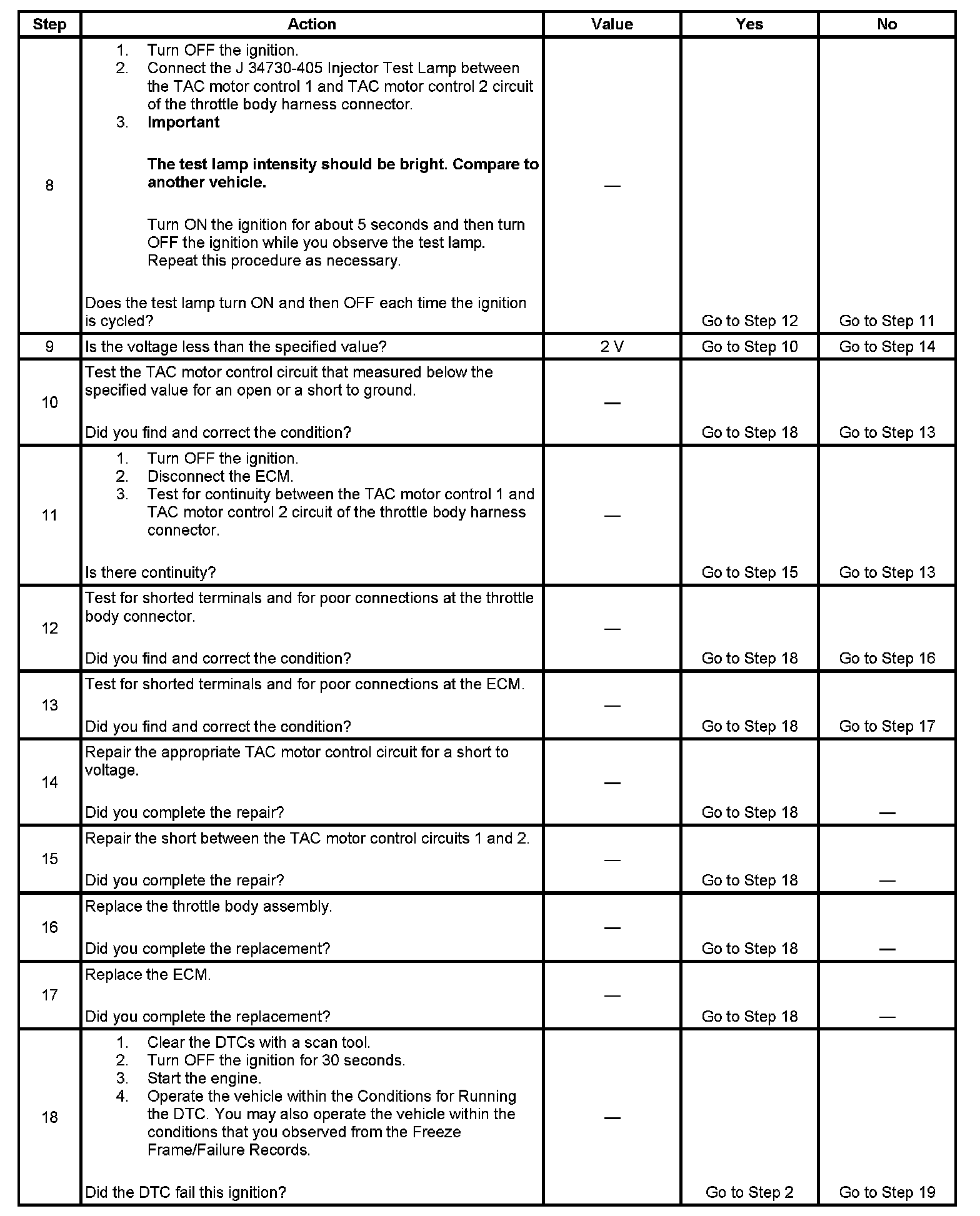 - The ECM detects the output driver for the TAC motor does not deactivate when commanded OFF.