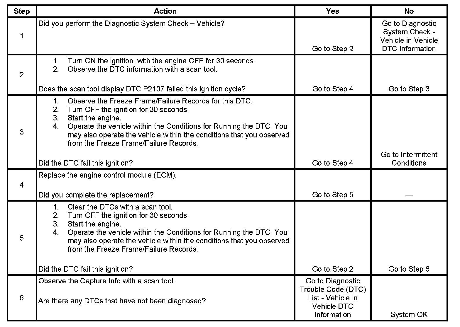 - DTC P2107 runs once the above conditions are met during the throttle actuator control system initialization.
