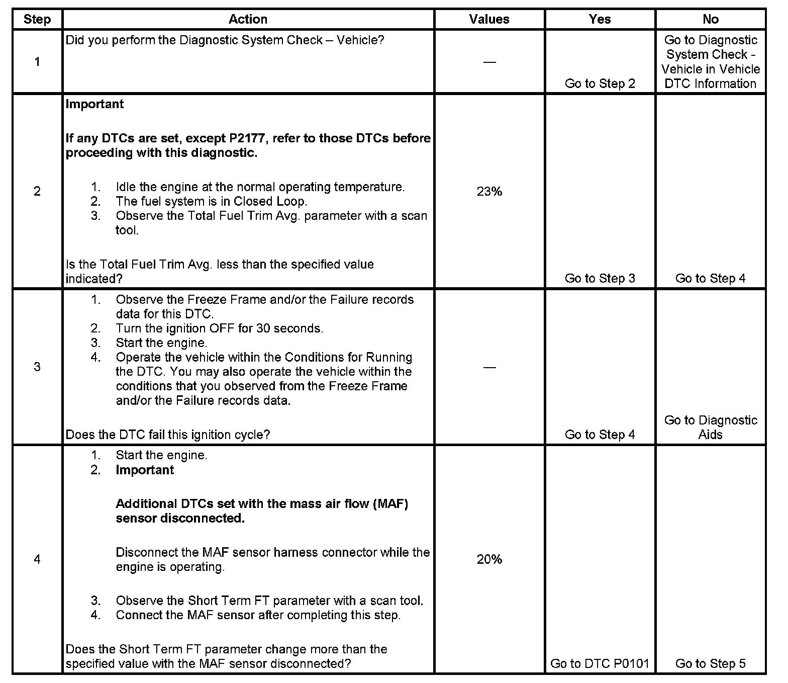- DTC P2177 runs continuously once the above conditions are met for at least 300 seconds.